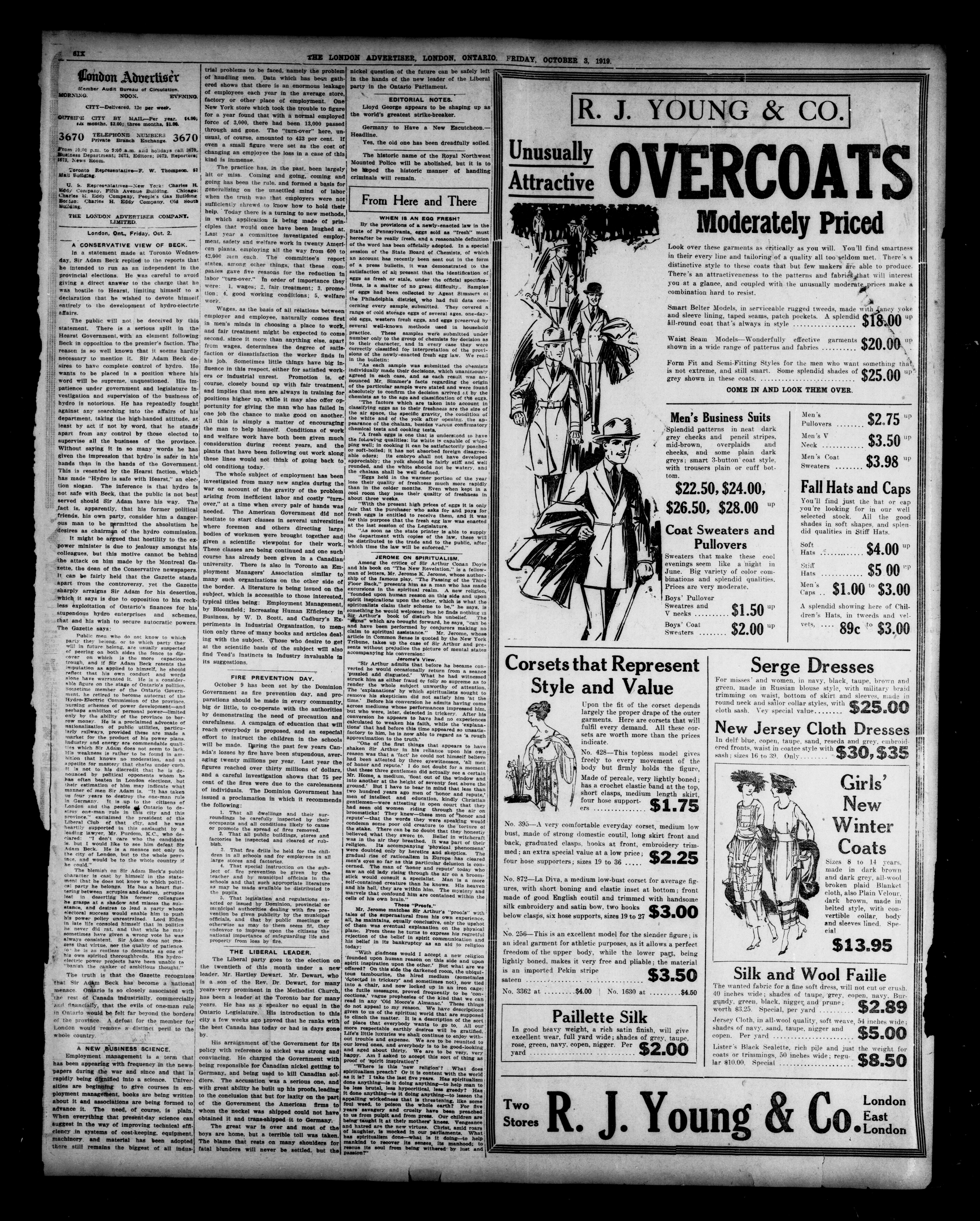 - The London Advertiser : 55th Year, No. 22518 (October 3, 1919)