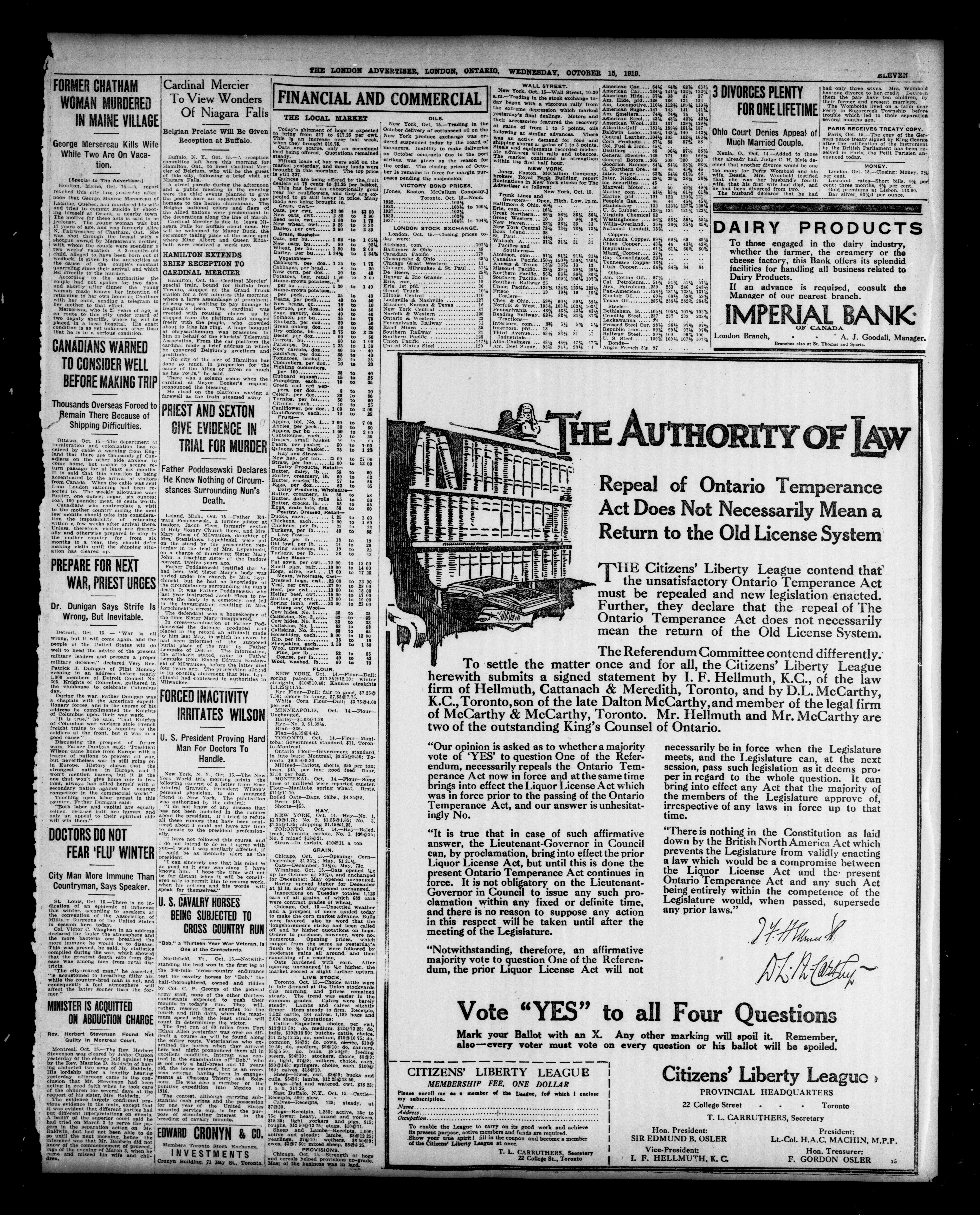 - The London Advertiser : 55th Year, No. 22528 (October 15, 1919)