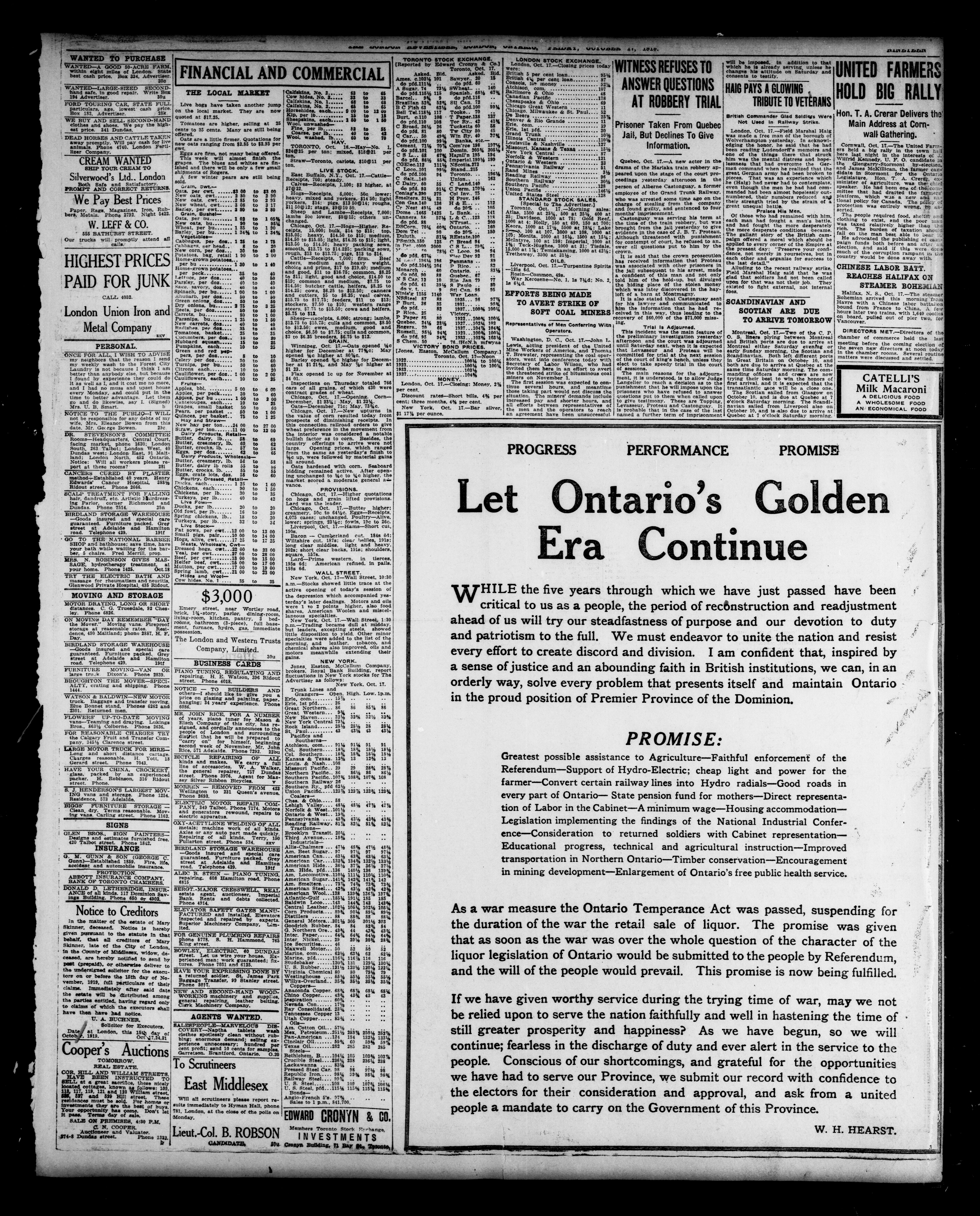 London advertiser. : The London Advertiser : 55th Year, No. 22530 (October 17, 1919)