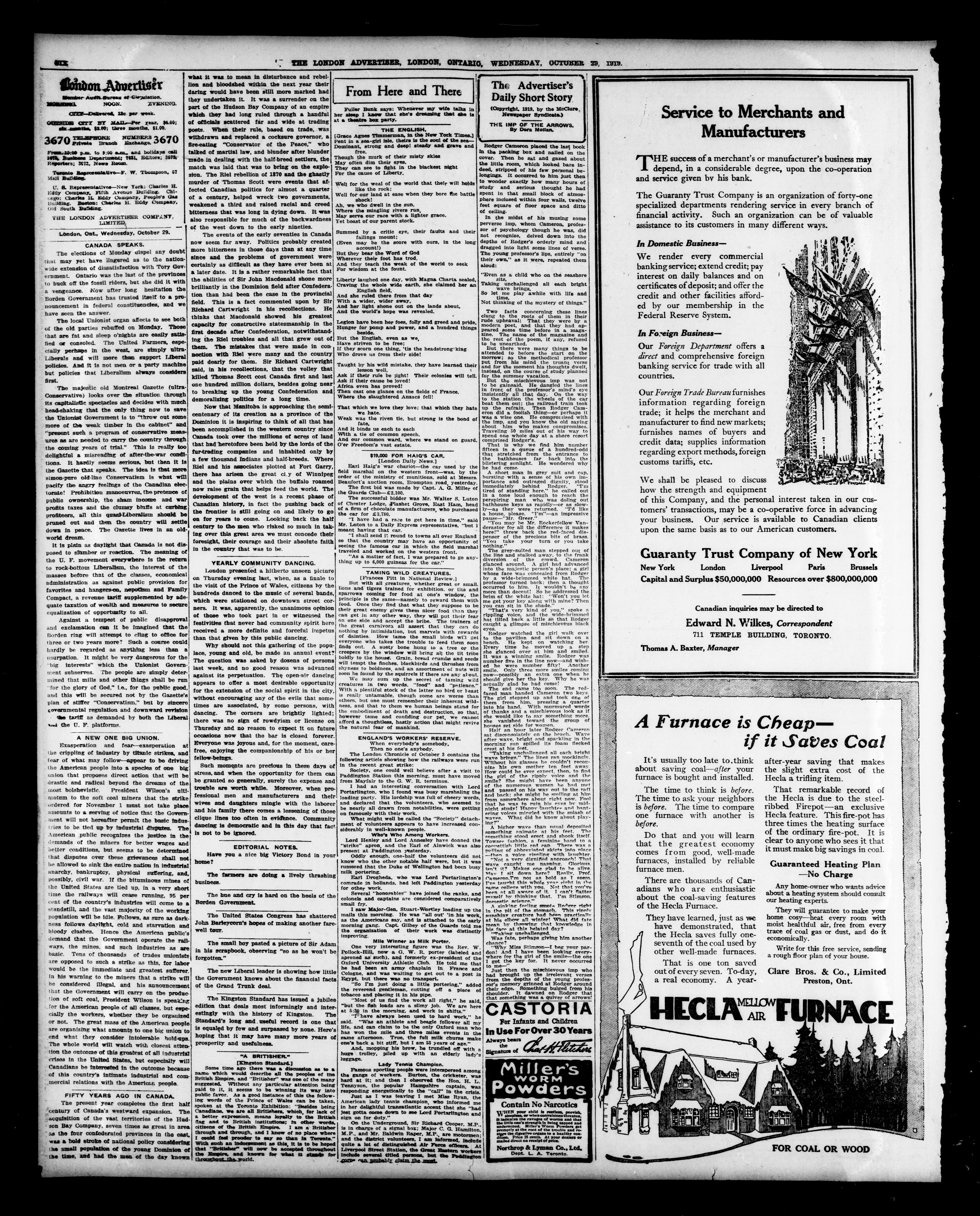 London advertiser. : The London Advertiser : 55th Year, No. 22540 (October 29, 1919)
