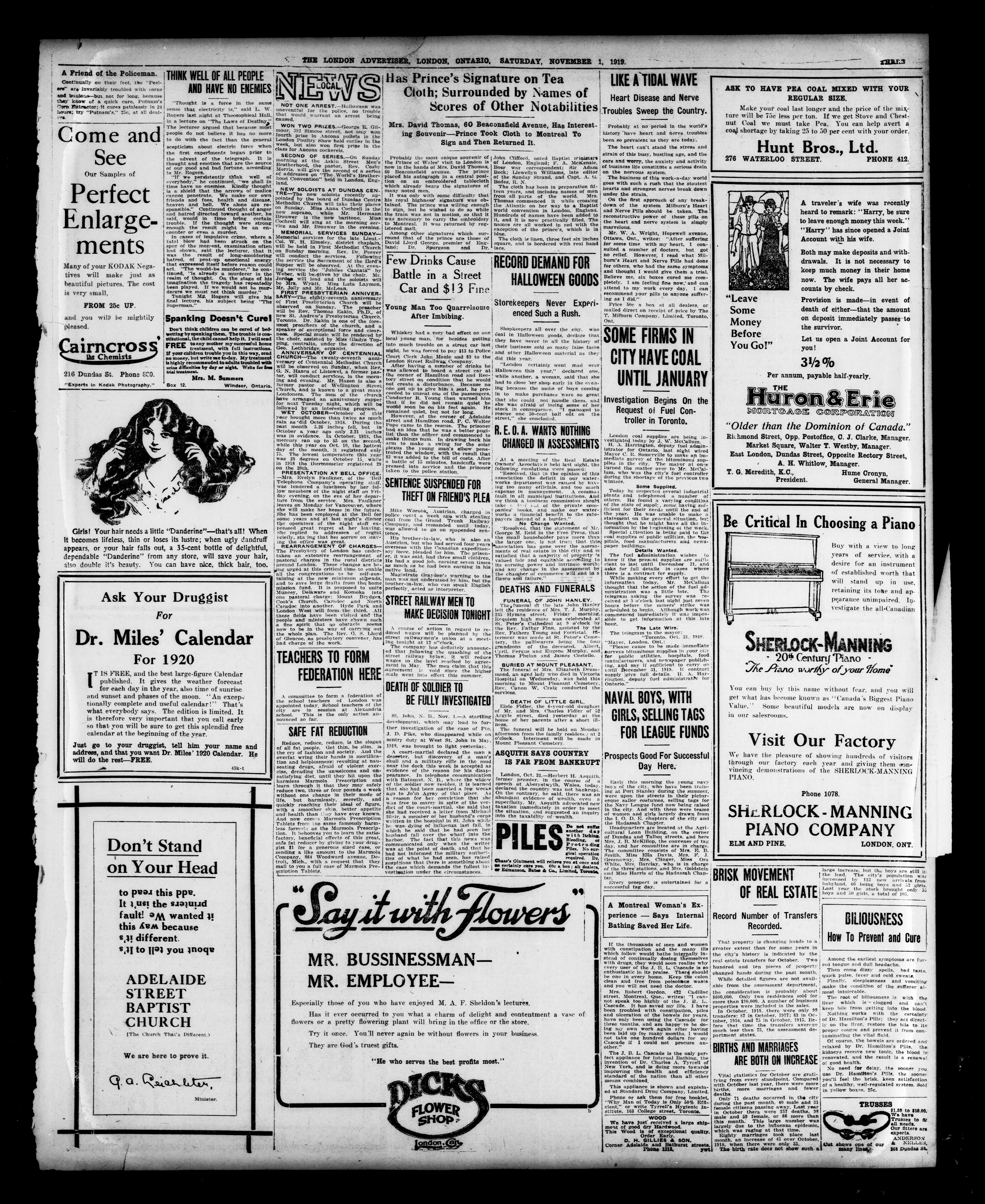 London advertiser. : The London Advertiser : 55th Year, No. 22543 (November 1, 1919)