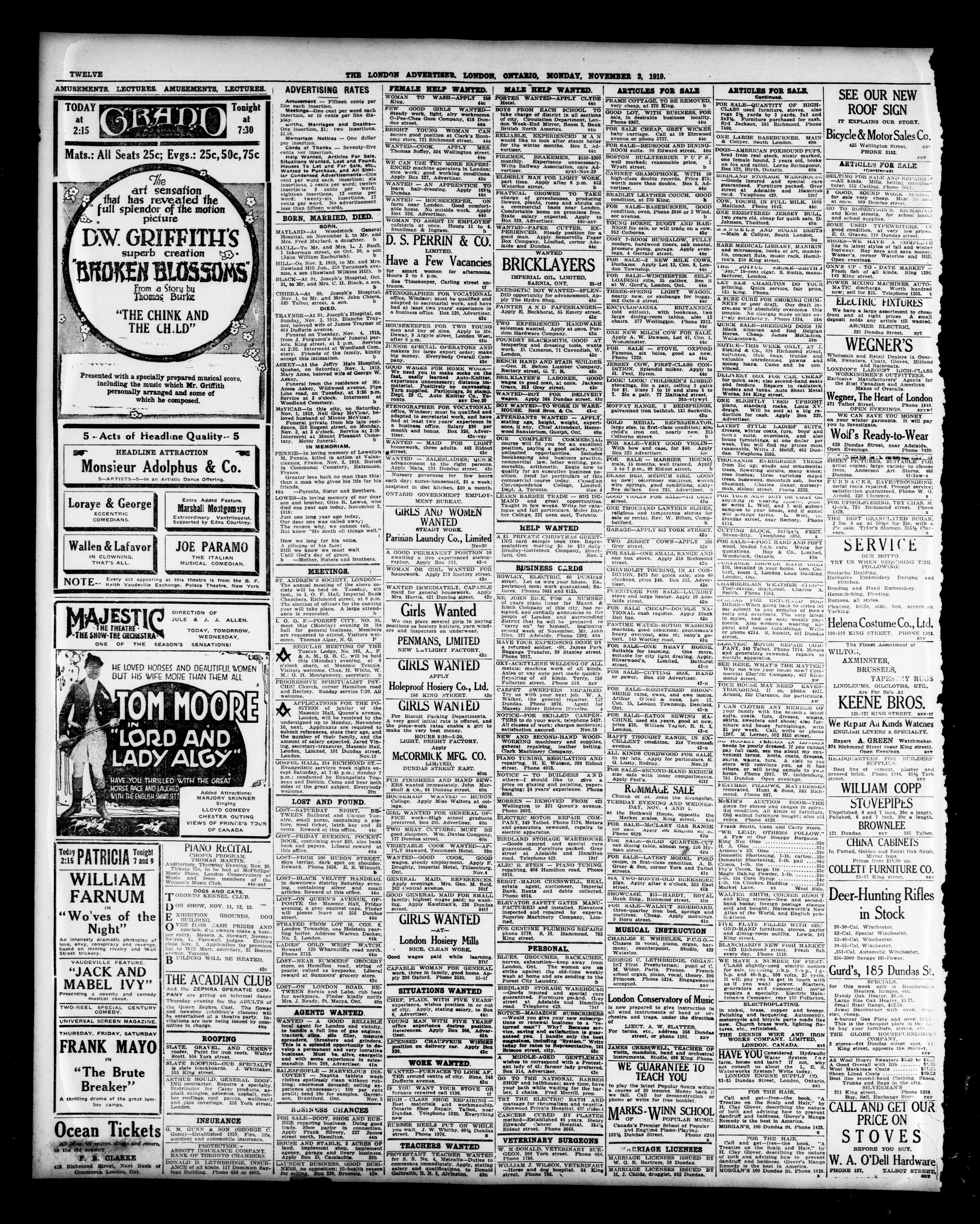 London advertiser. : The London Advertiser : 55th Year, No. 22544 (November 3, 1919)