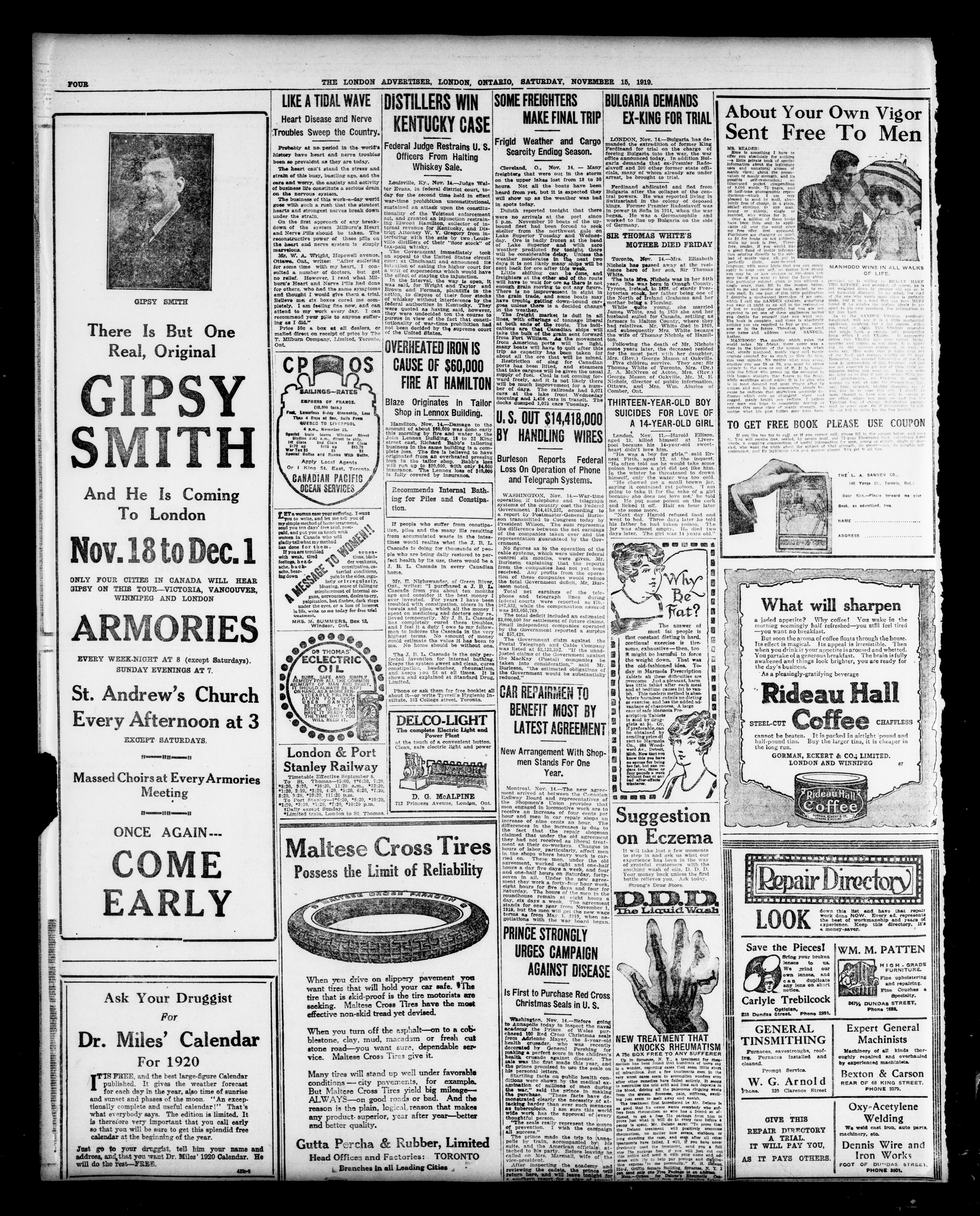 The London Advertiser : 55th Year, No. 22555 (November 15, 1919)