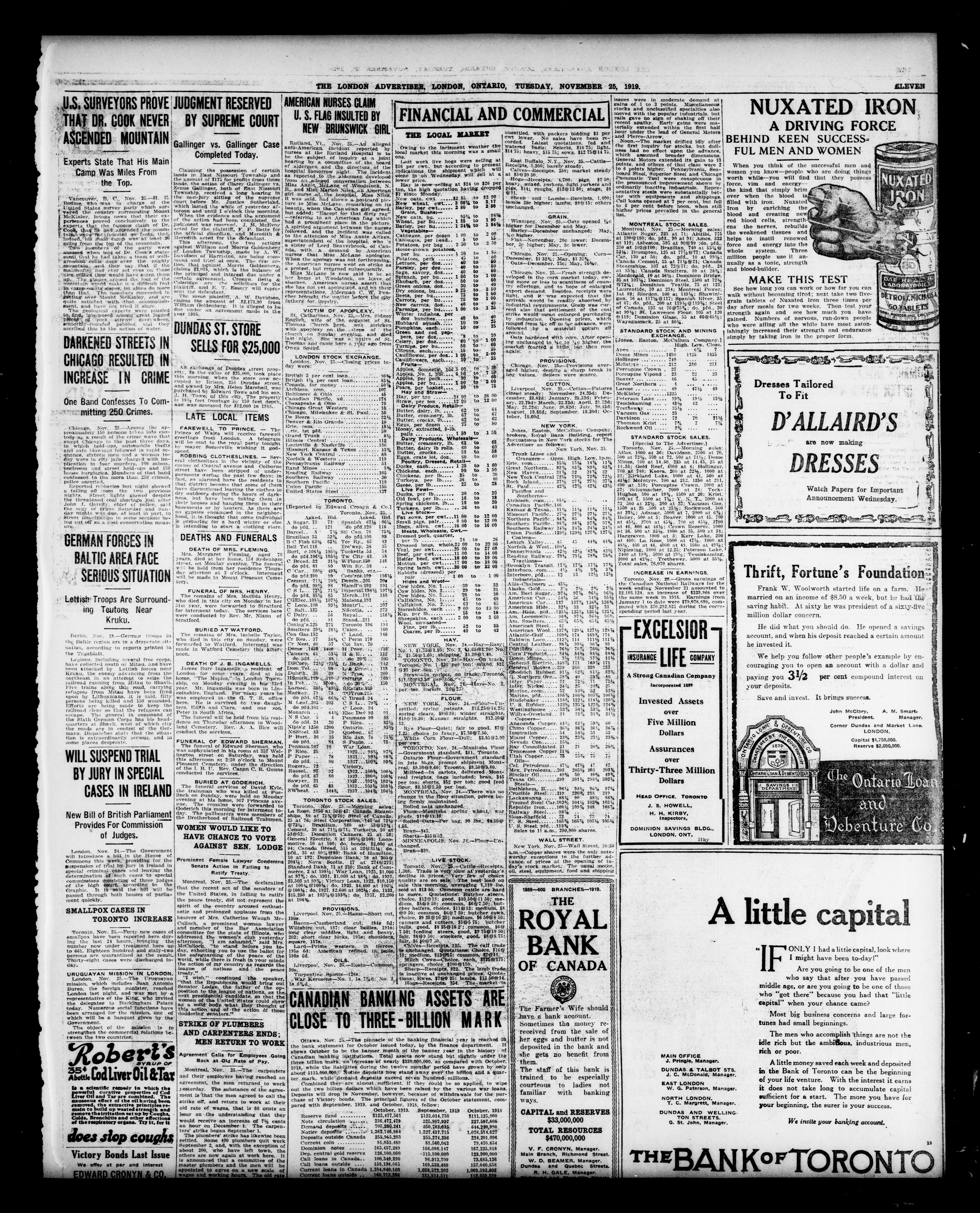 London advertiser. : The London Advertiser : 55th Year, No. 22563 (November 25, 1919)