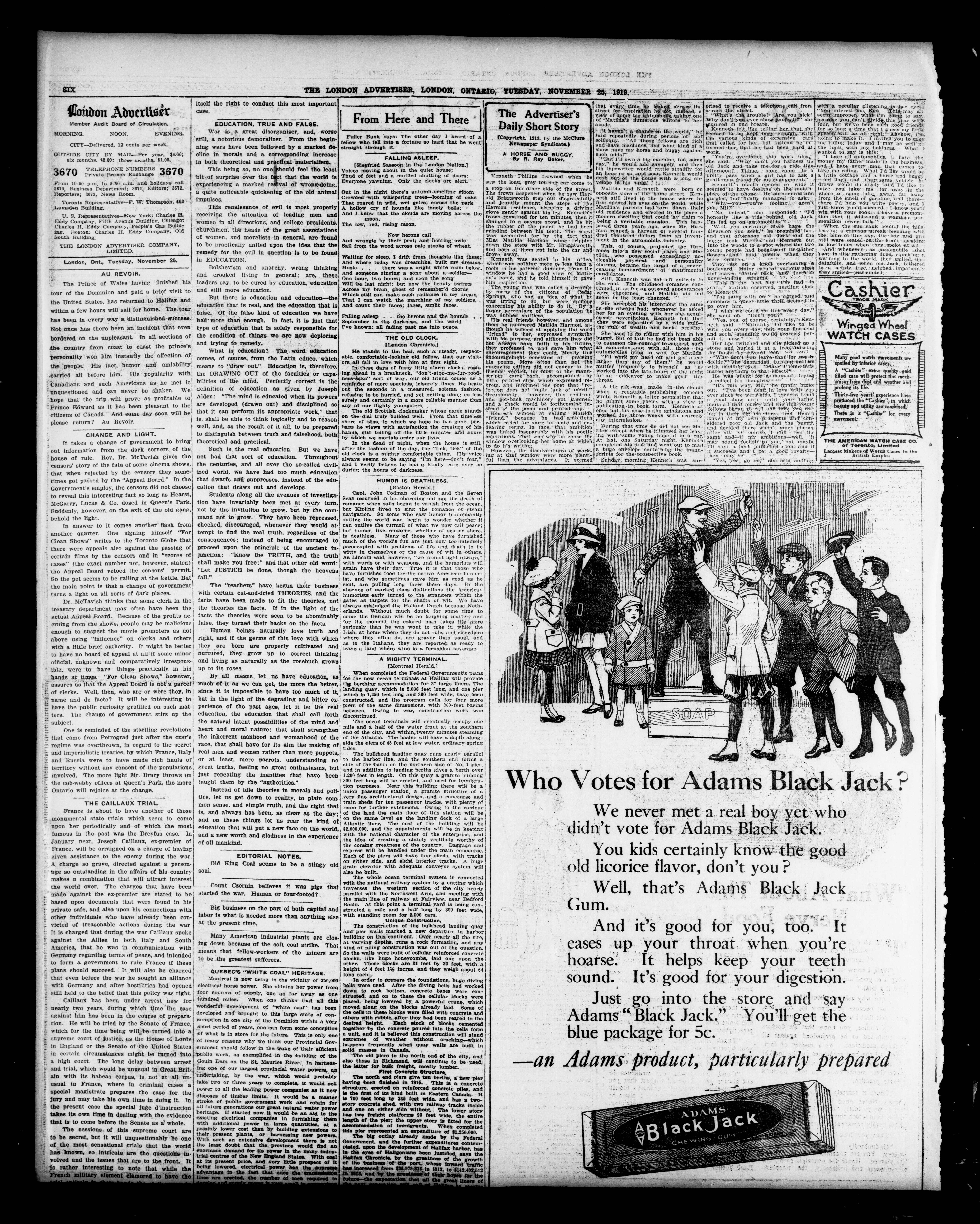 London advertiser. : The London Advertiser : 55th Year, No. 22563 (November 25, 1919)