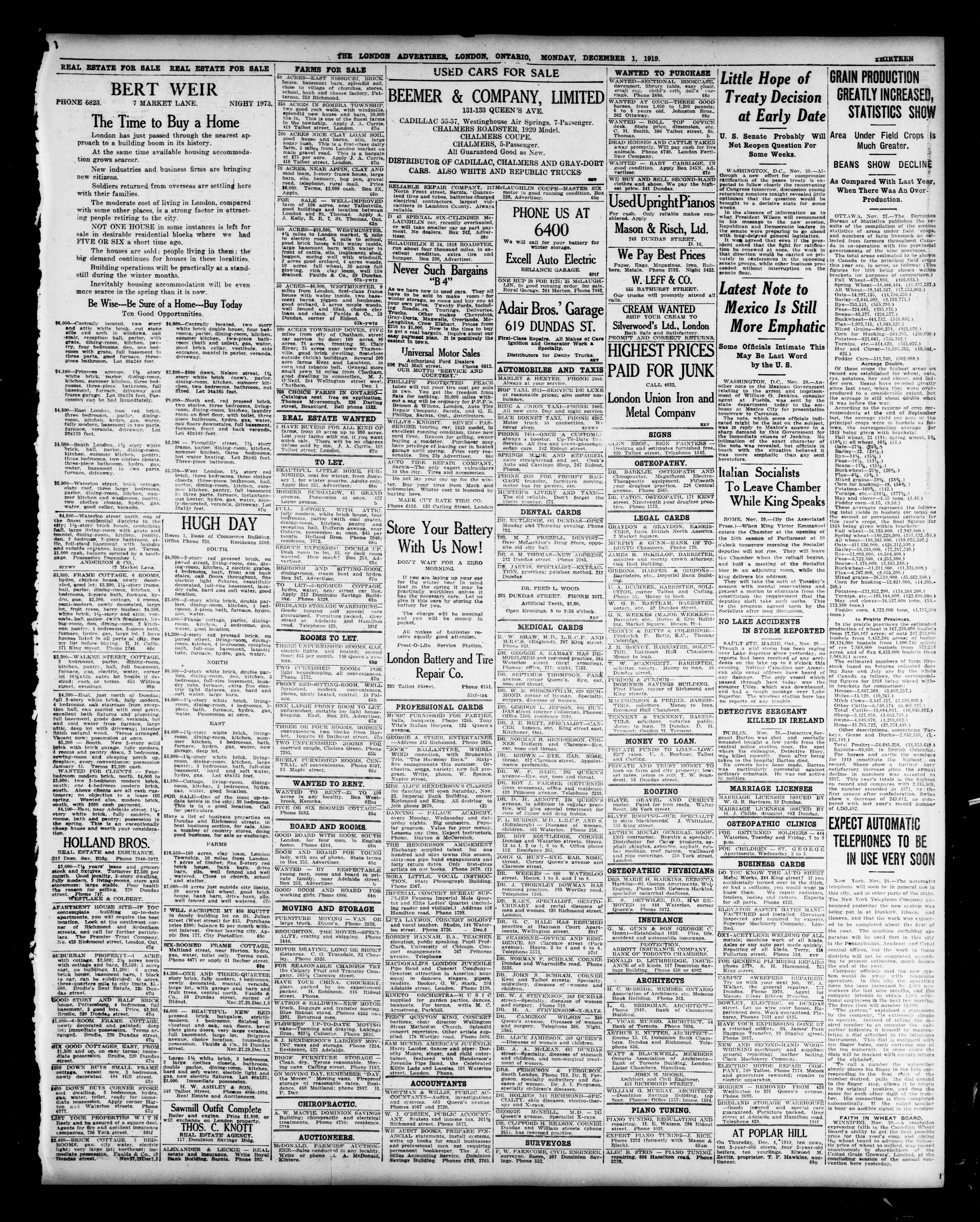 London advertiser. : The London Advertiser : 55th Year, No. 22568 (December 1, 1919)