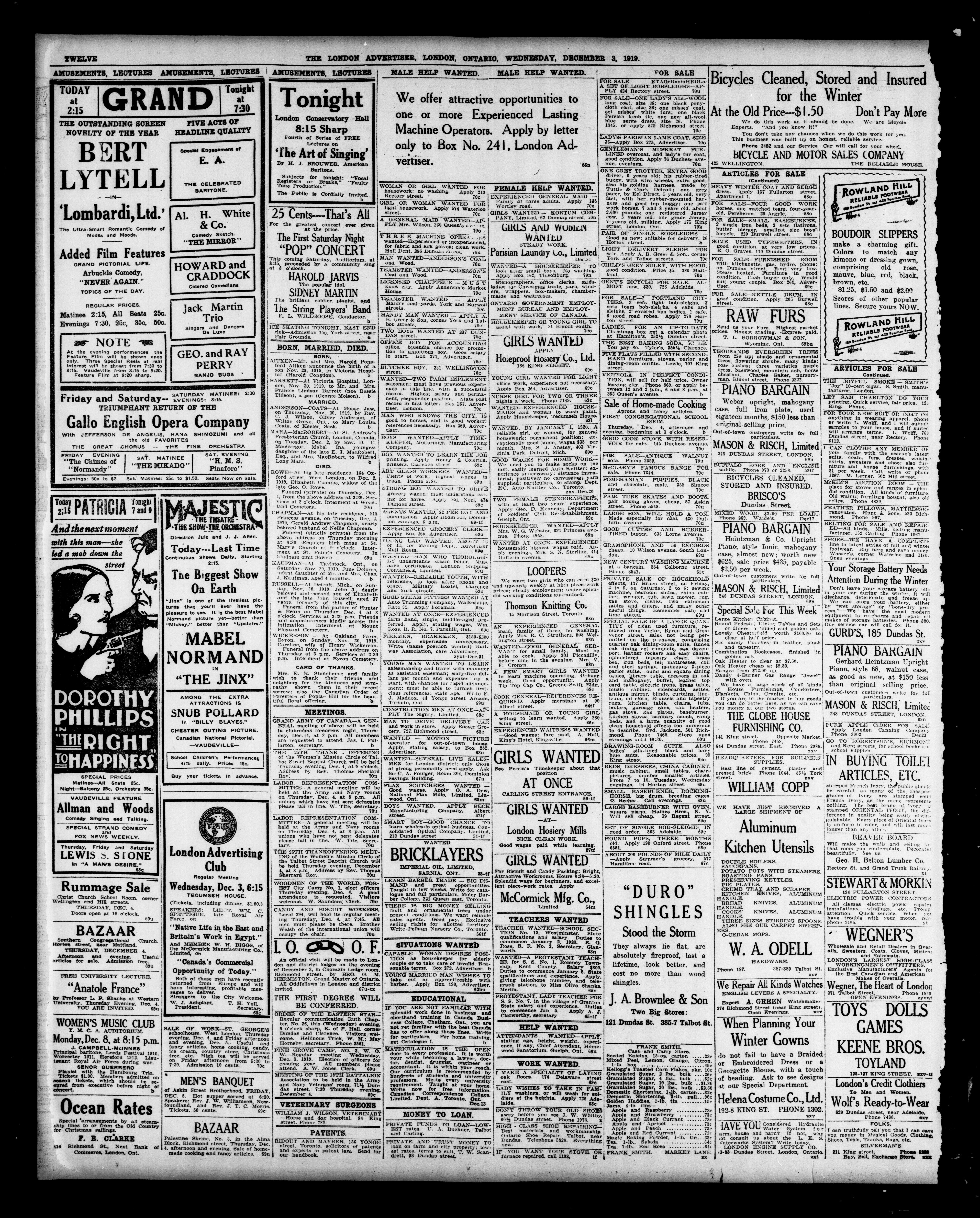 London advertiser. : The London Advertiser : 55th Year, No. 22570 (December 3, 1919)