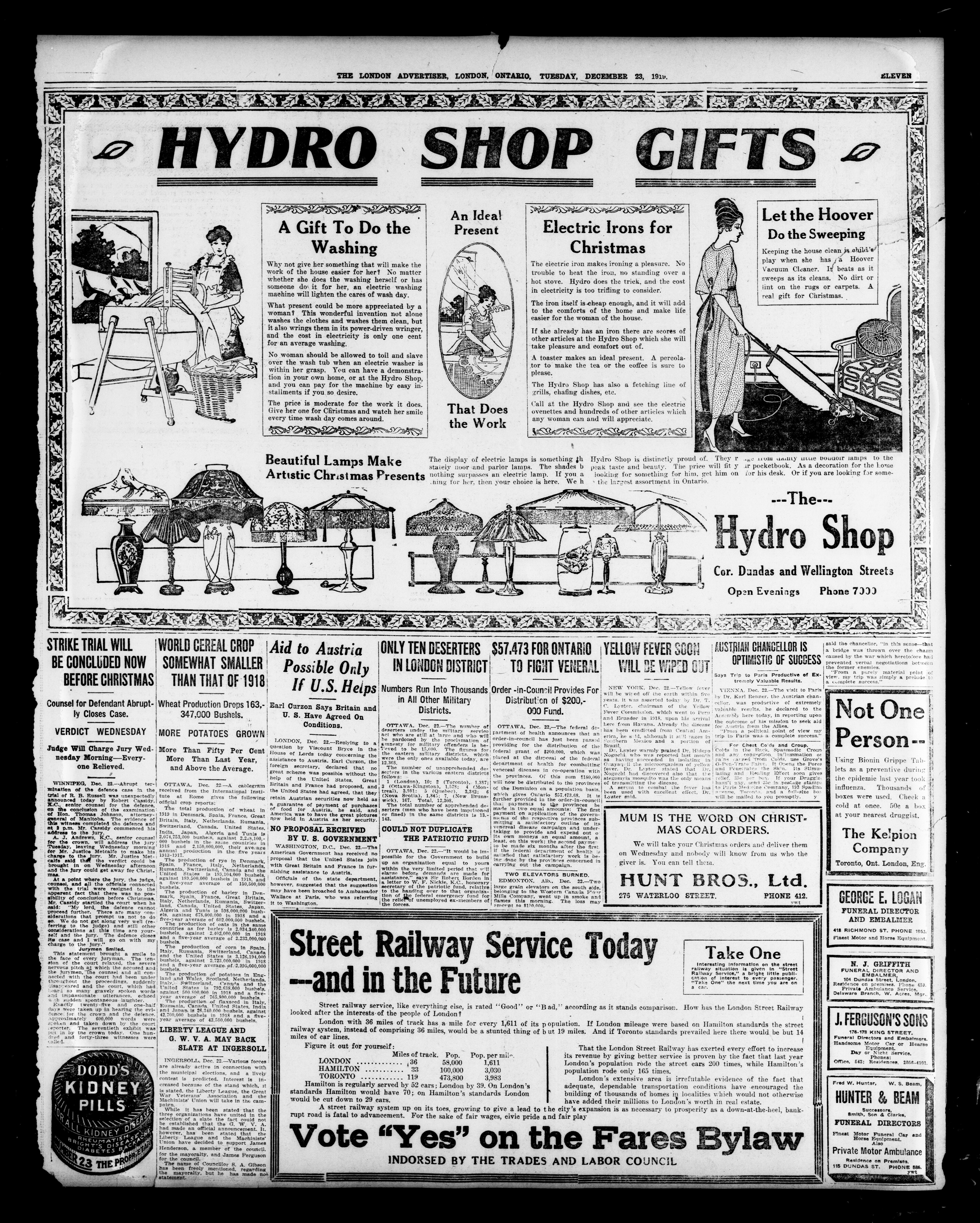 London advertiser. : The London Advertiser : 57th Year, No. 22587 (December 23, 1919)