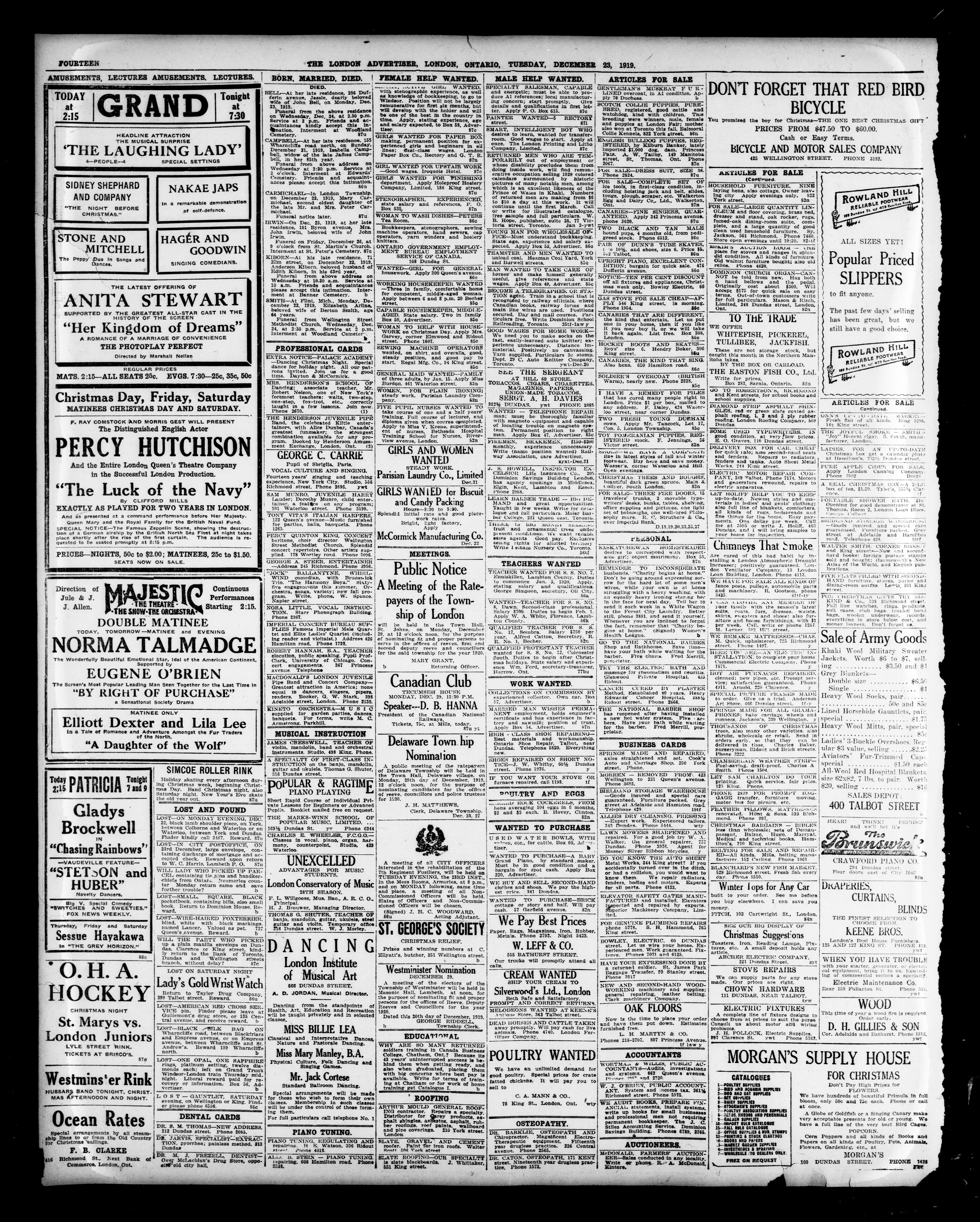 London advertiser. : The London Advertiser : 57th Year, No. 22587 (December 23, 1919)