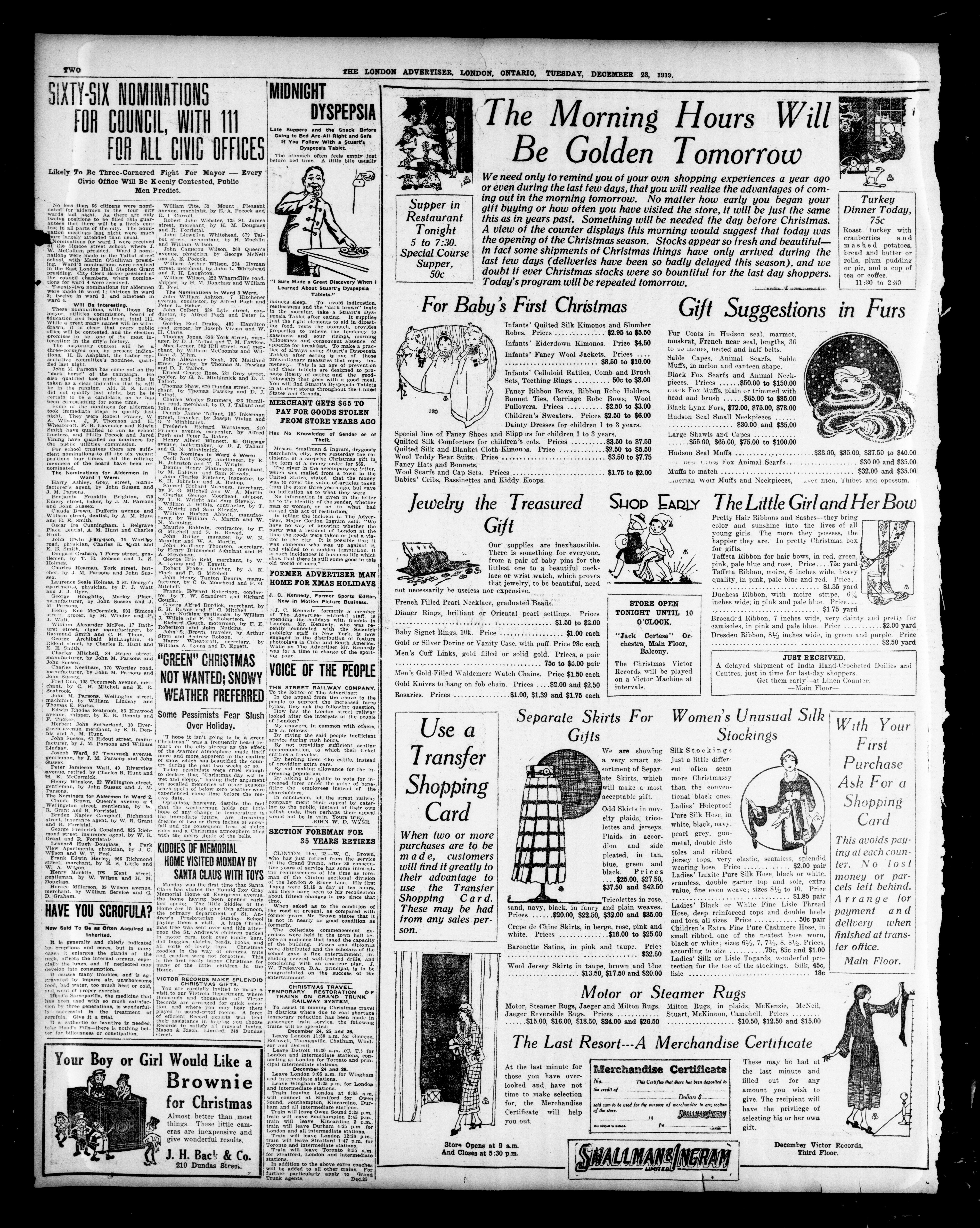 London advertiser. : The London Advertiser : 57th Year, No. 22587 (December 23, 1919)