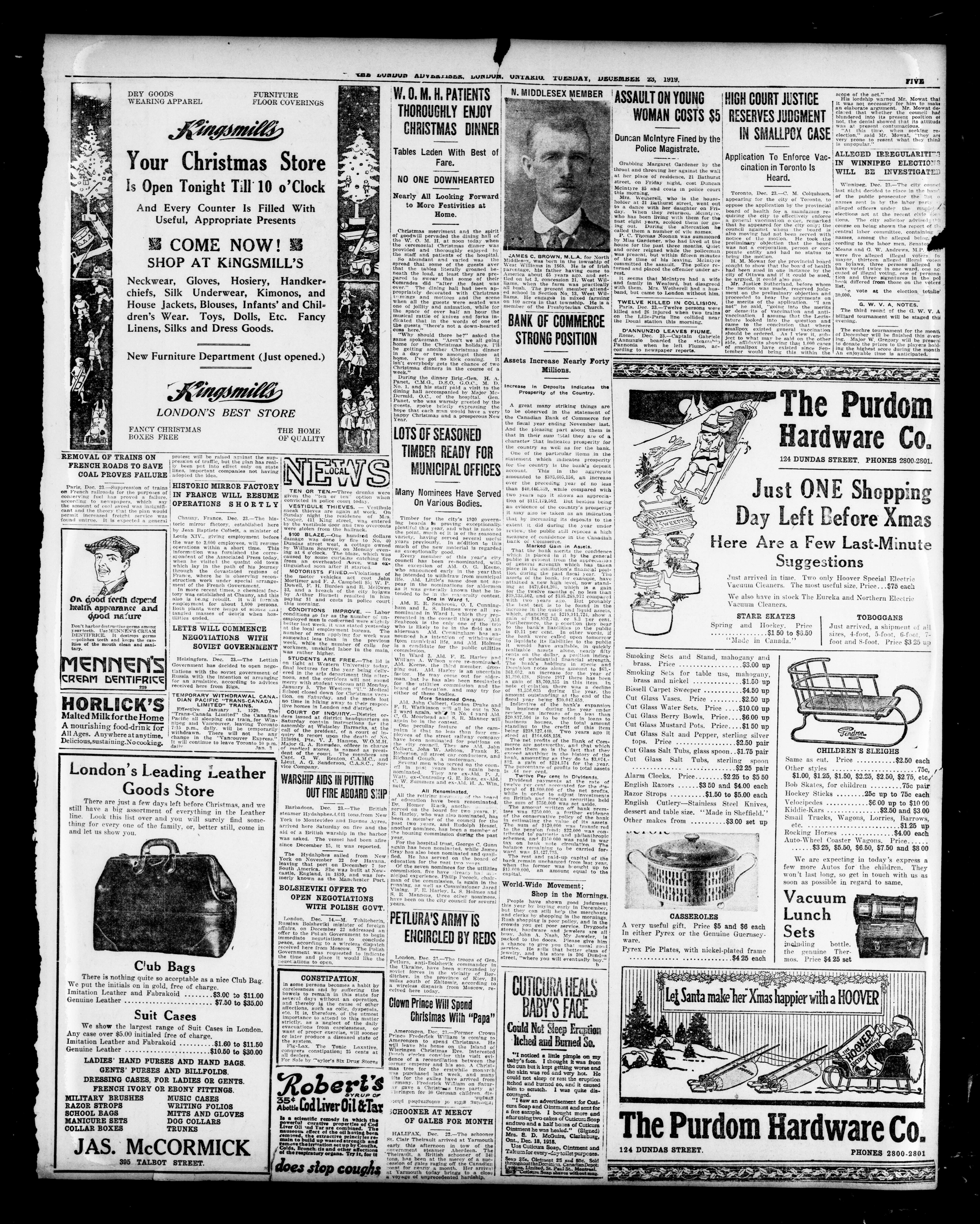 London advertiser. : The London Advertiser : 57th Year, No. 22587 (December 23, 1919)