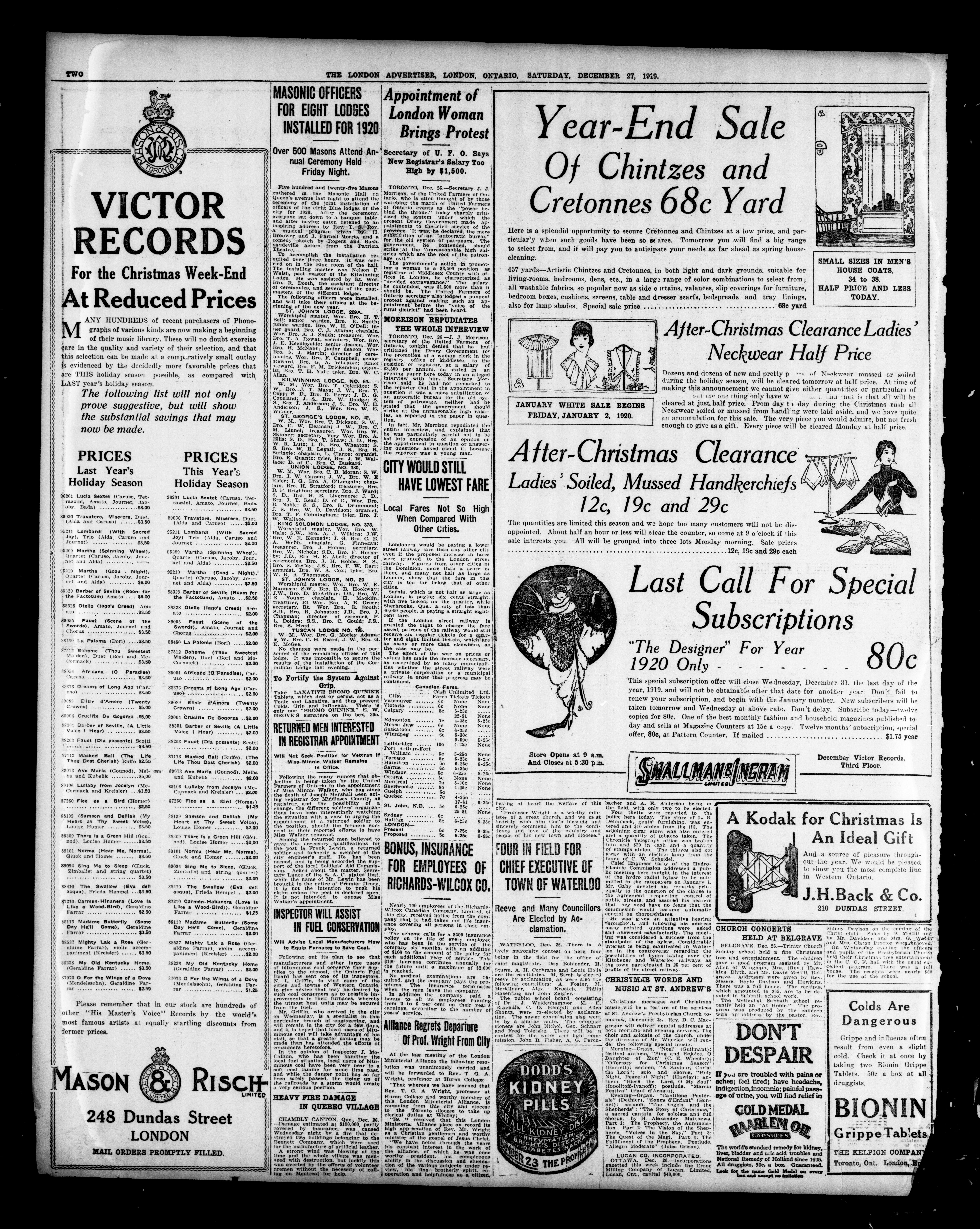 London advertiser. : The London Advertiser : 57th Year, No. 22591 (December 27, 1919)