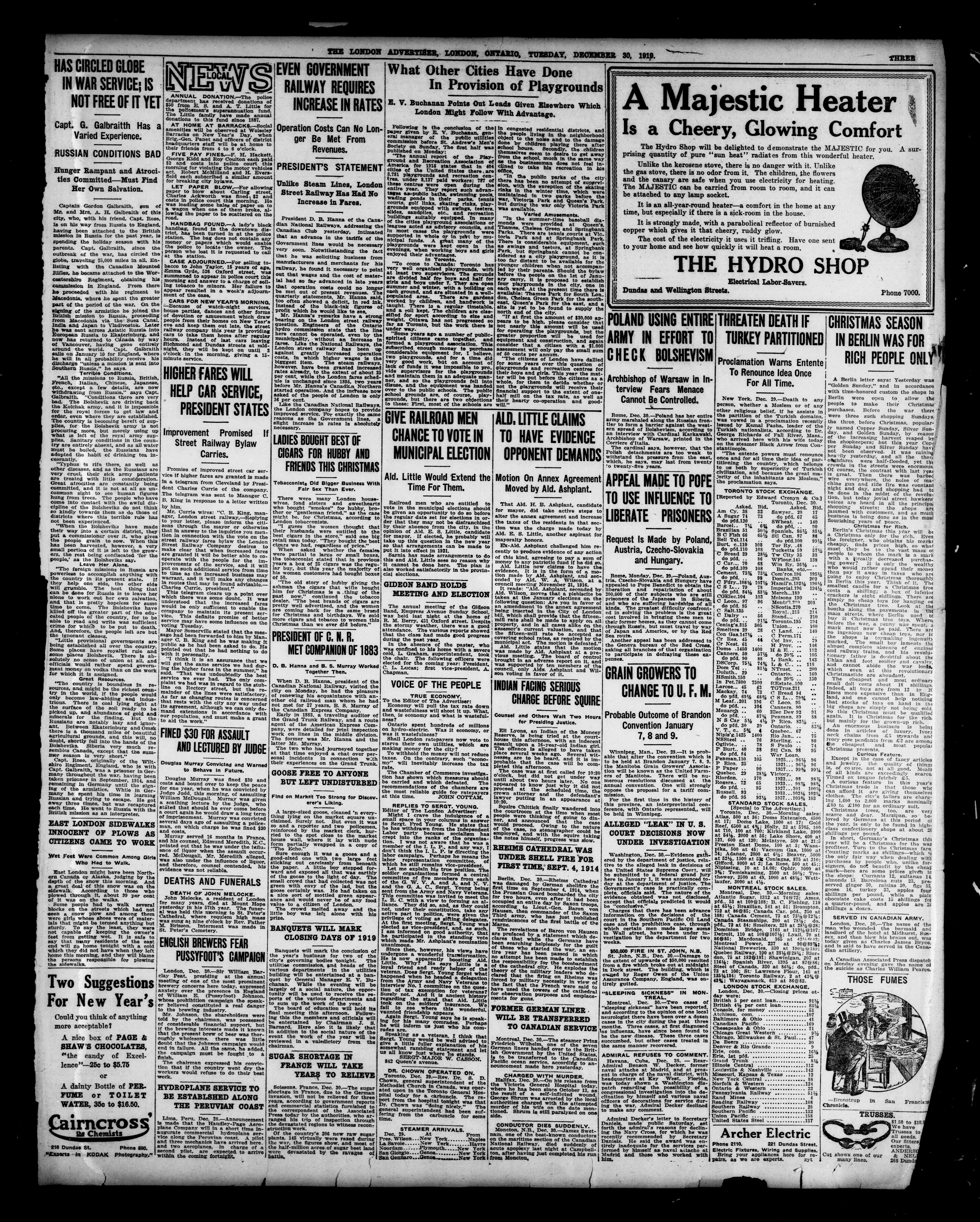 London advertiser. : The London Advertiser : 57th Year, No. 22593 (December 30, 1919)