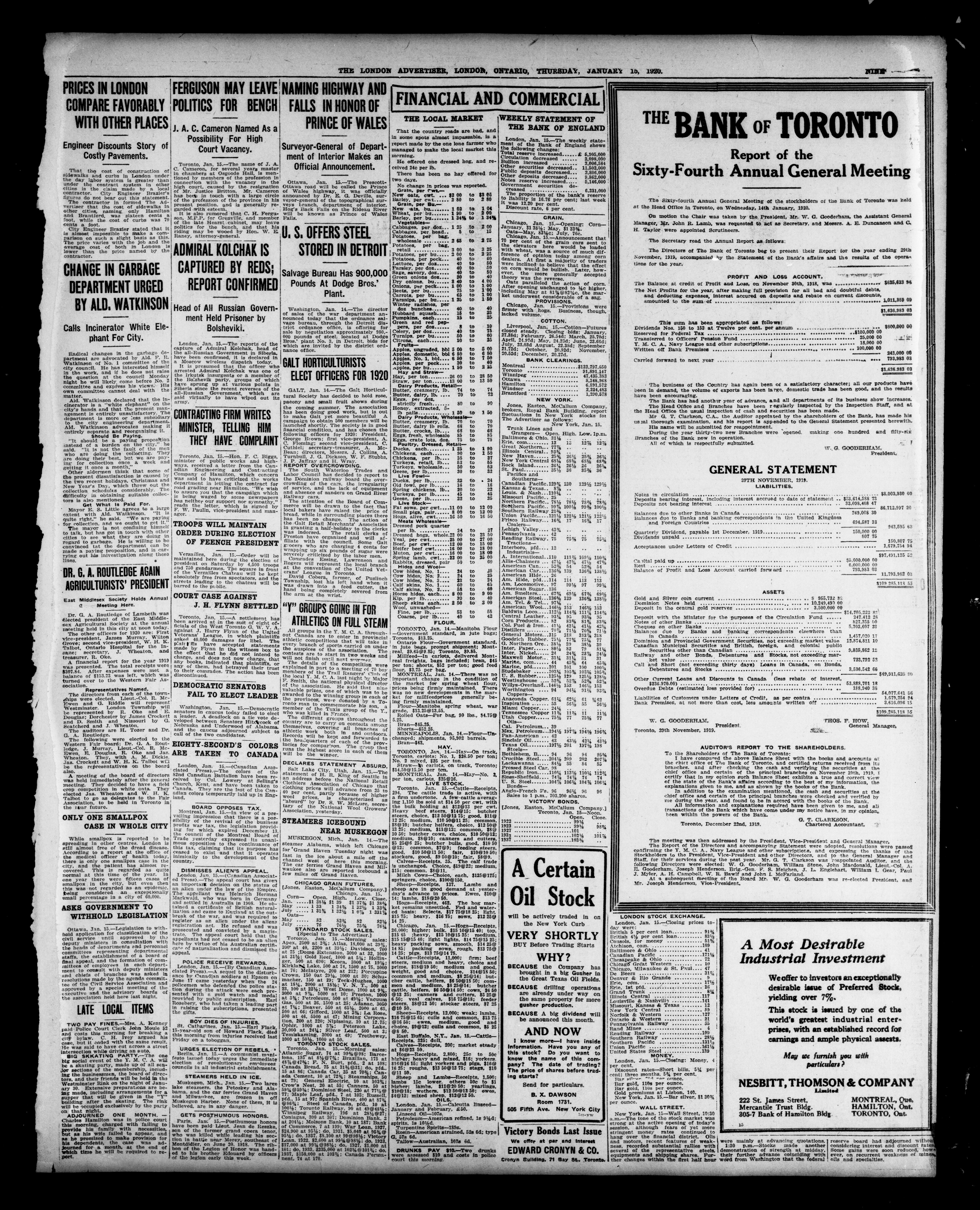 - The London Advertiser : 57th Year, No. 22607 (January 15, 1920)
