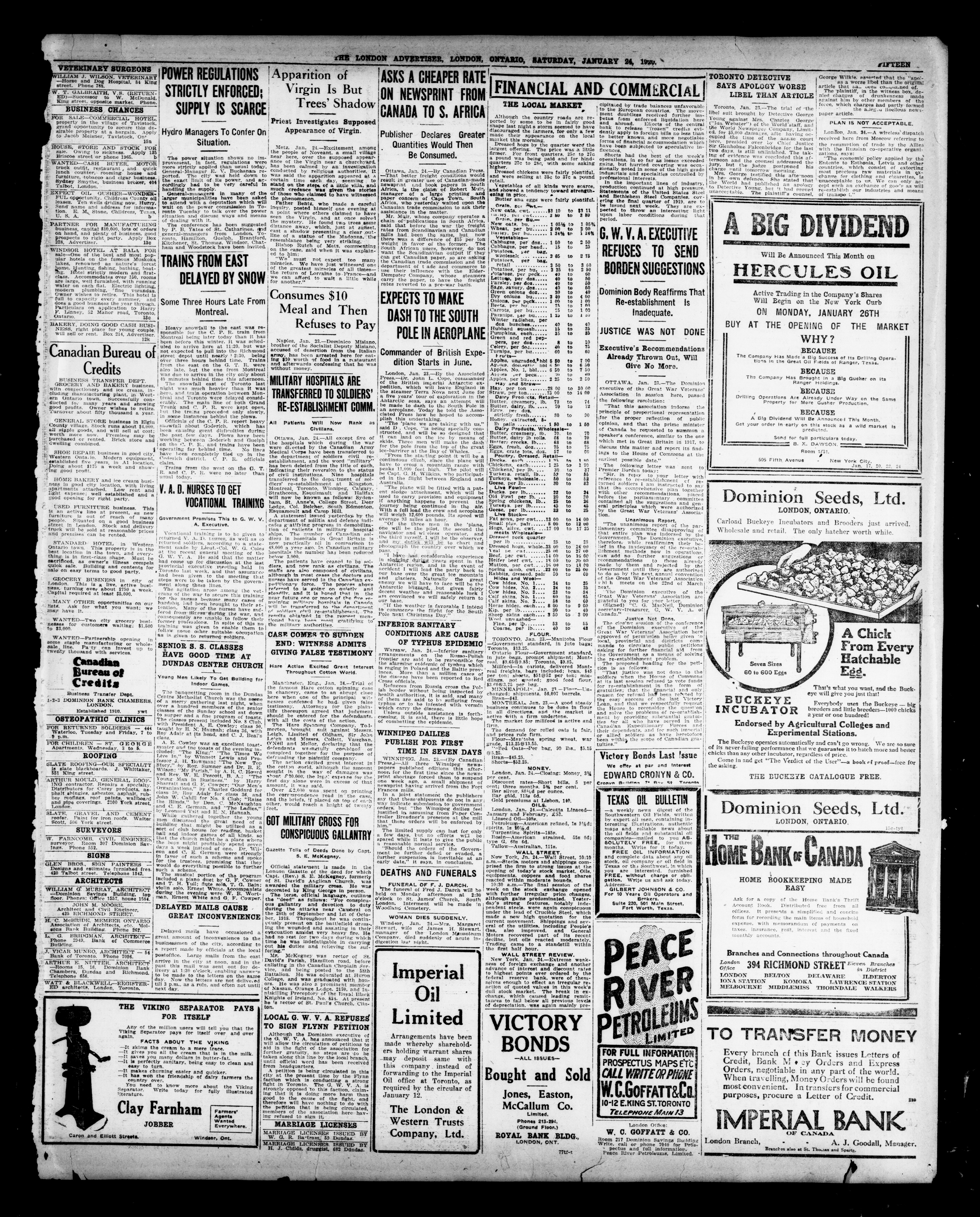 London advertiser. : The London Advertiser : 57th Year, No. 22615 (January 24, 1920)
