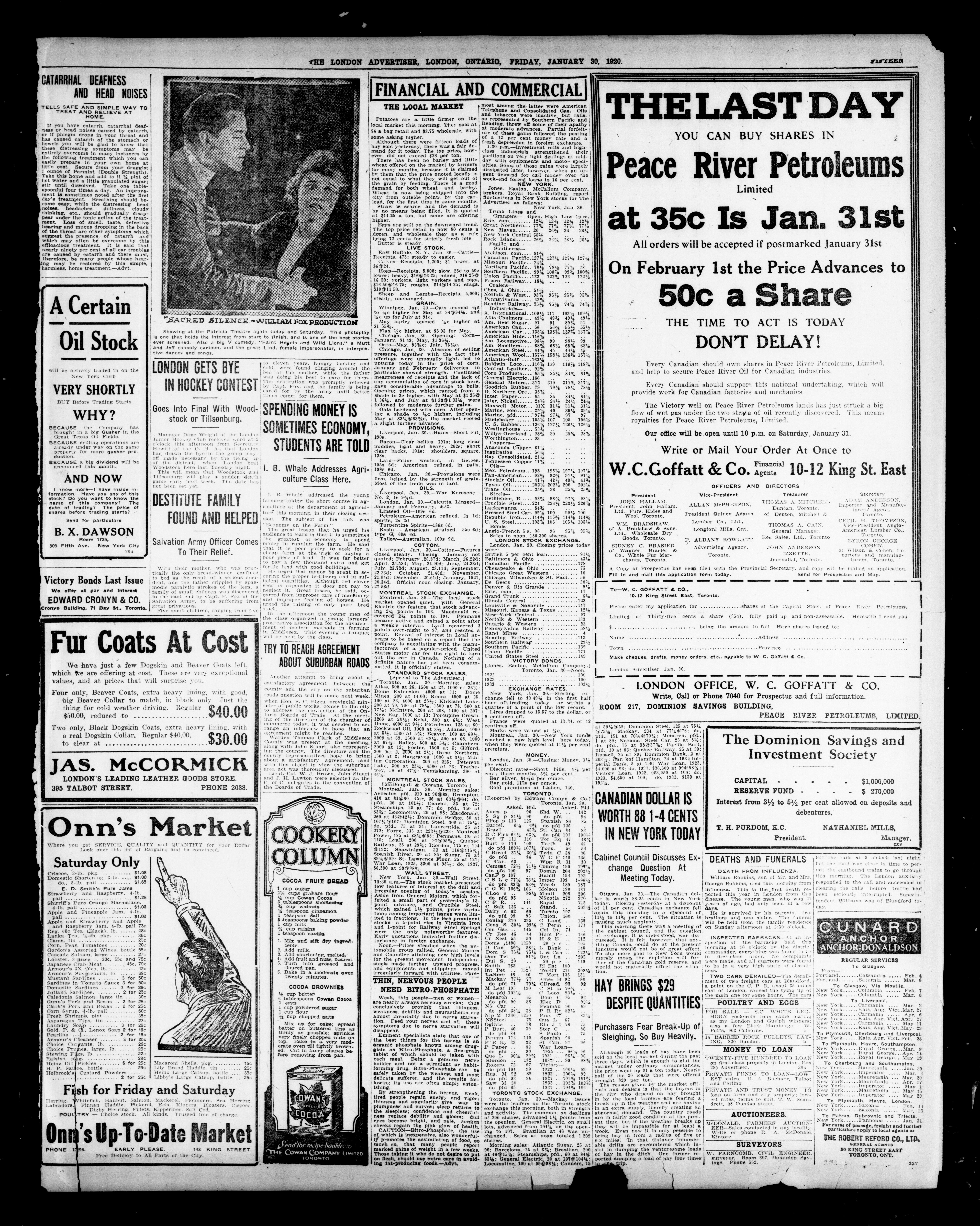 London advertiser. : The London Advertiser : 57th Year, No. 22620 (January 30, 1920)