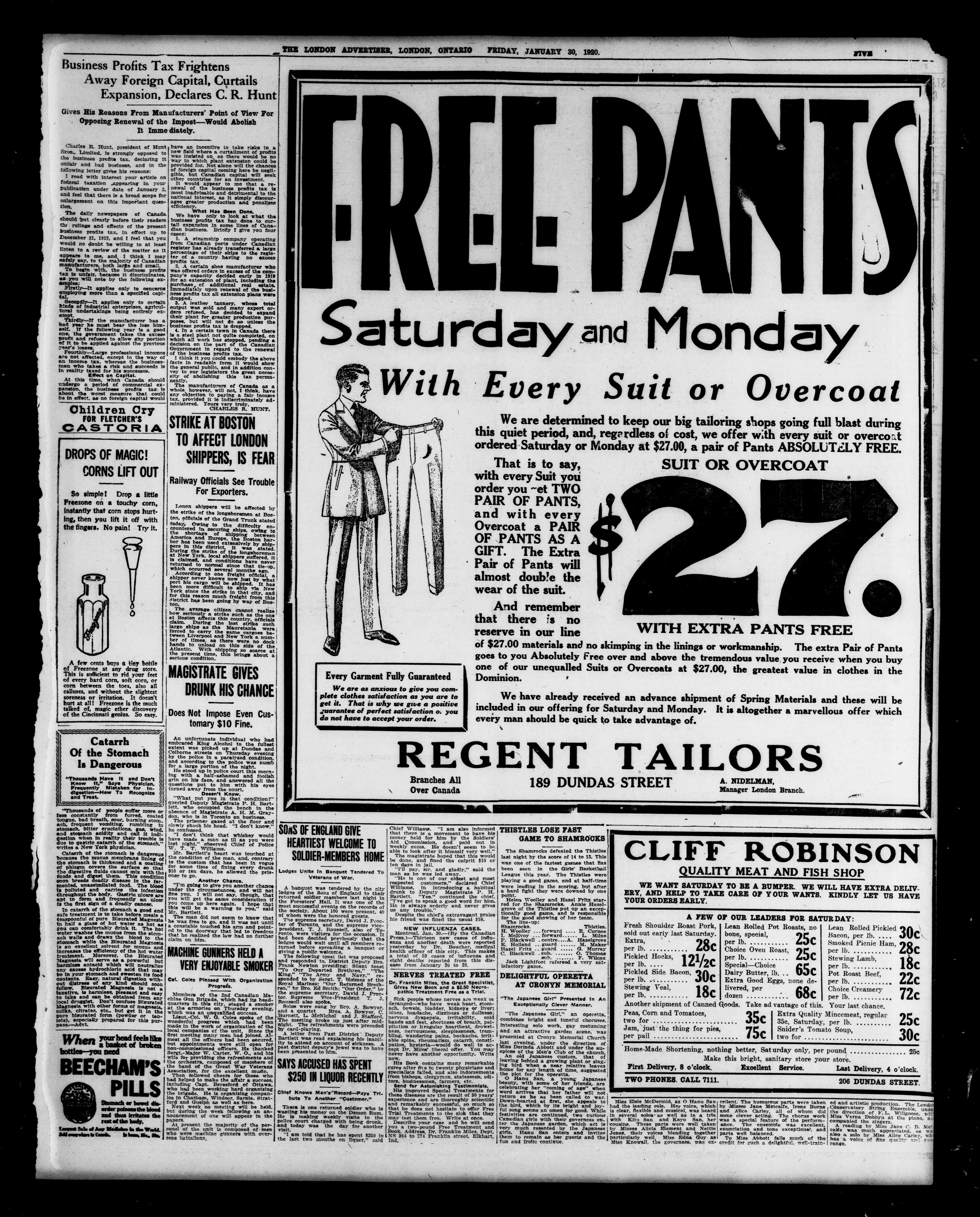 London advertiser. : The London Advertiser : 57th Year, No. 22620 (January 30, 1920)
