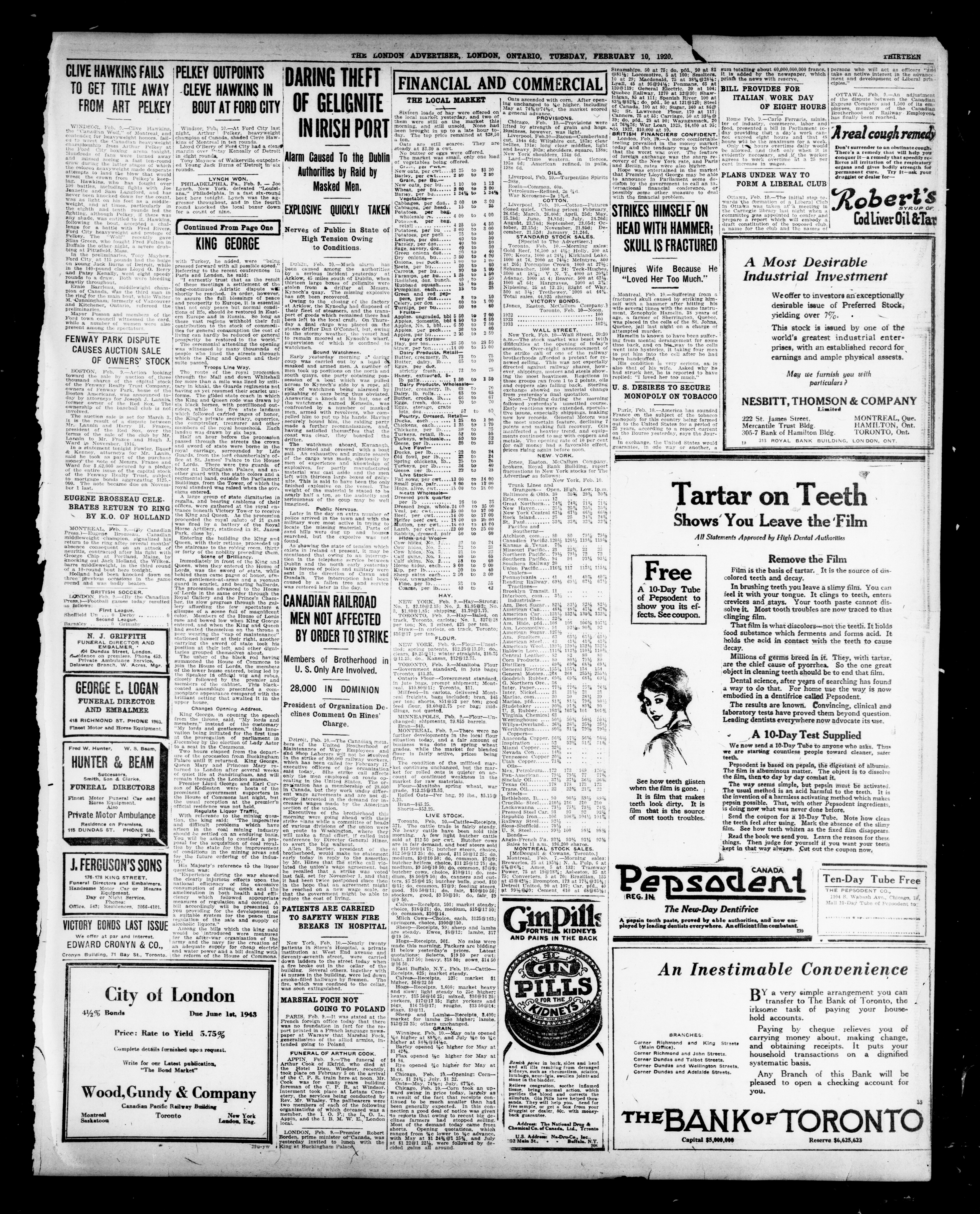 - The London Advertiser : 57th Year, No. 22629 (February 10, 1920)
