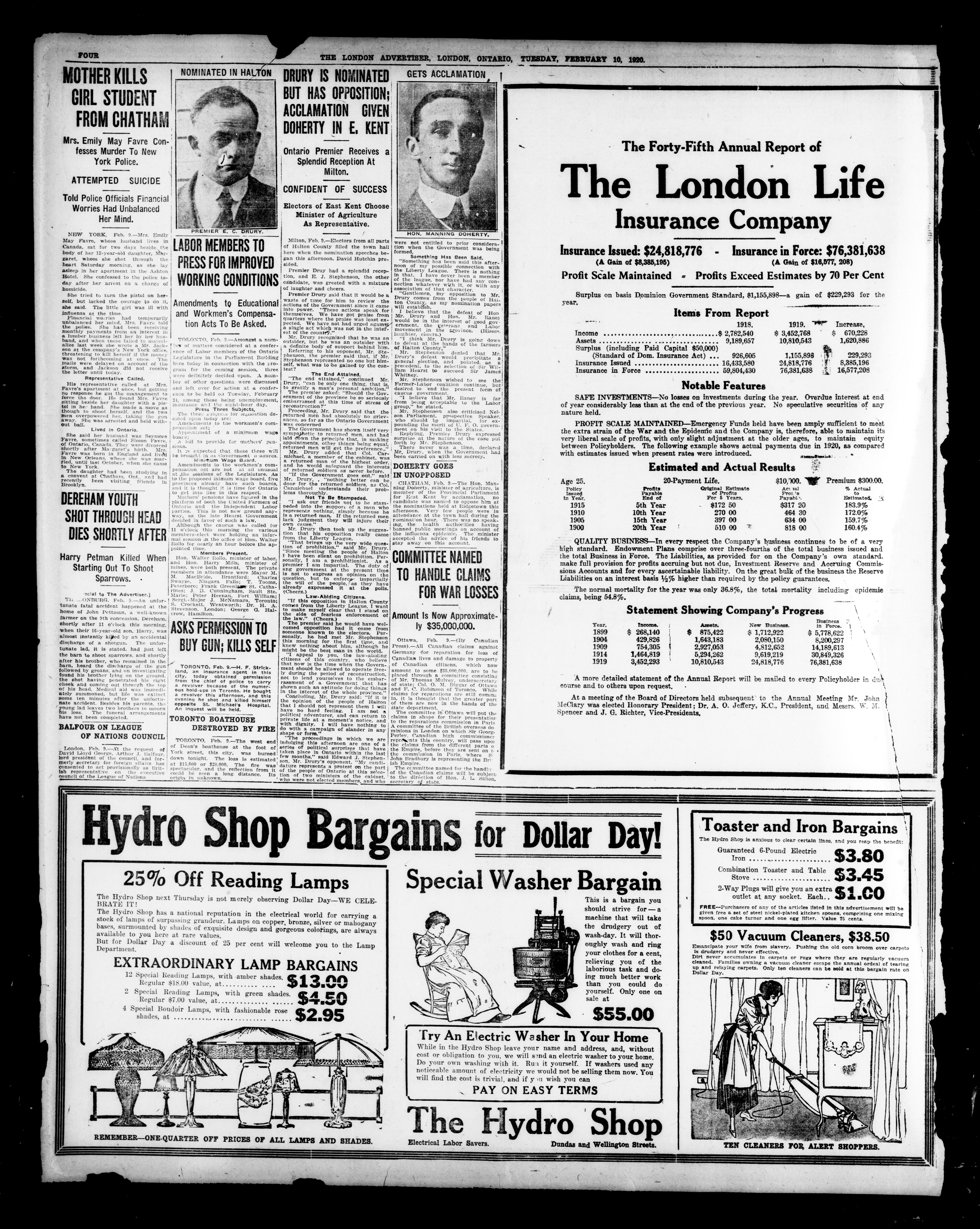 - The London Advertiser : 57th Year, No. 22629 (February 10, 1920)