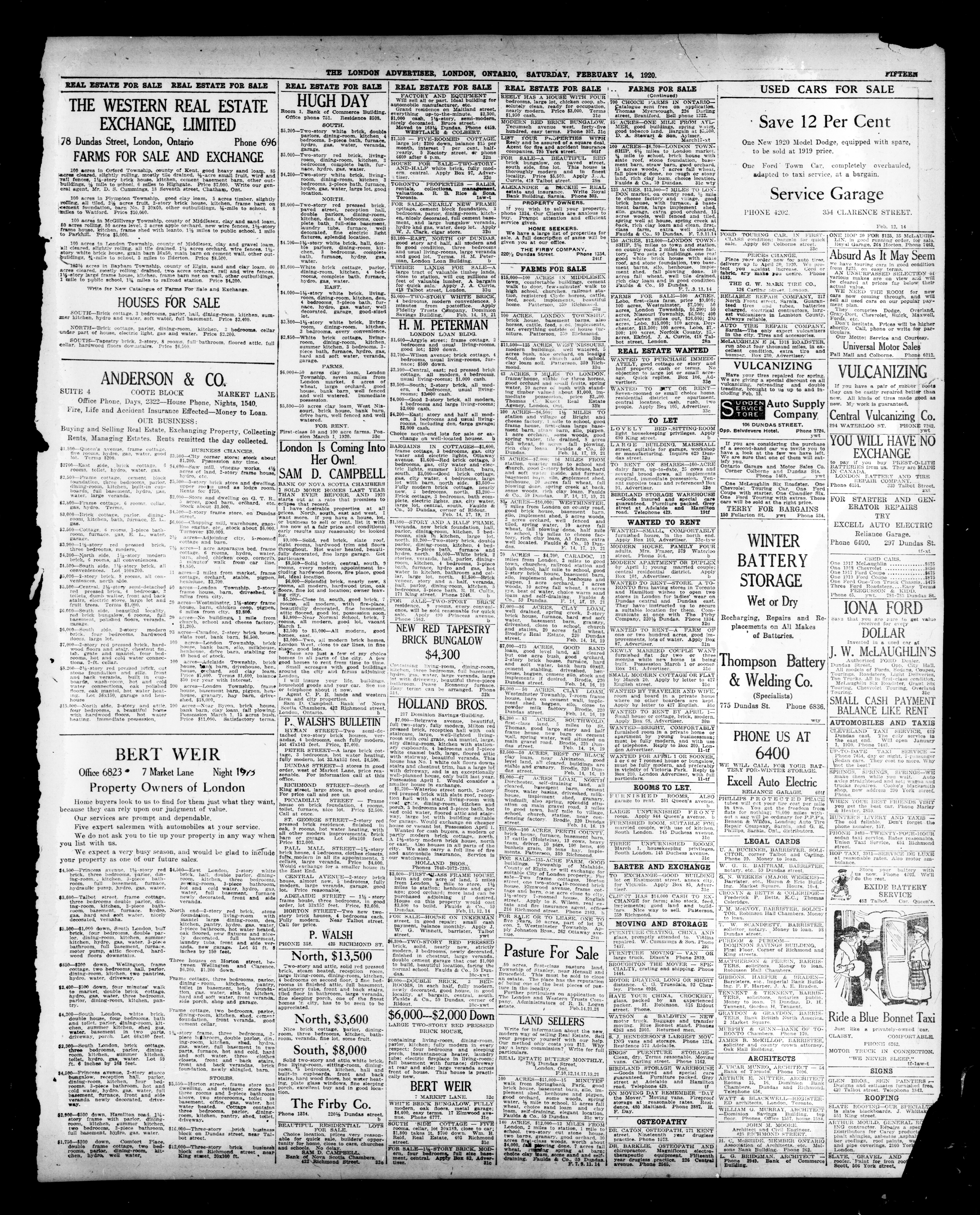 - The London Advertiser : 57th Year, No. 22633 (February 14, 1920)