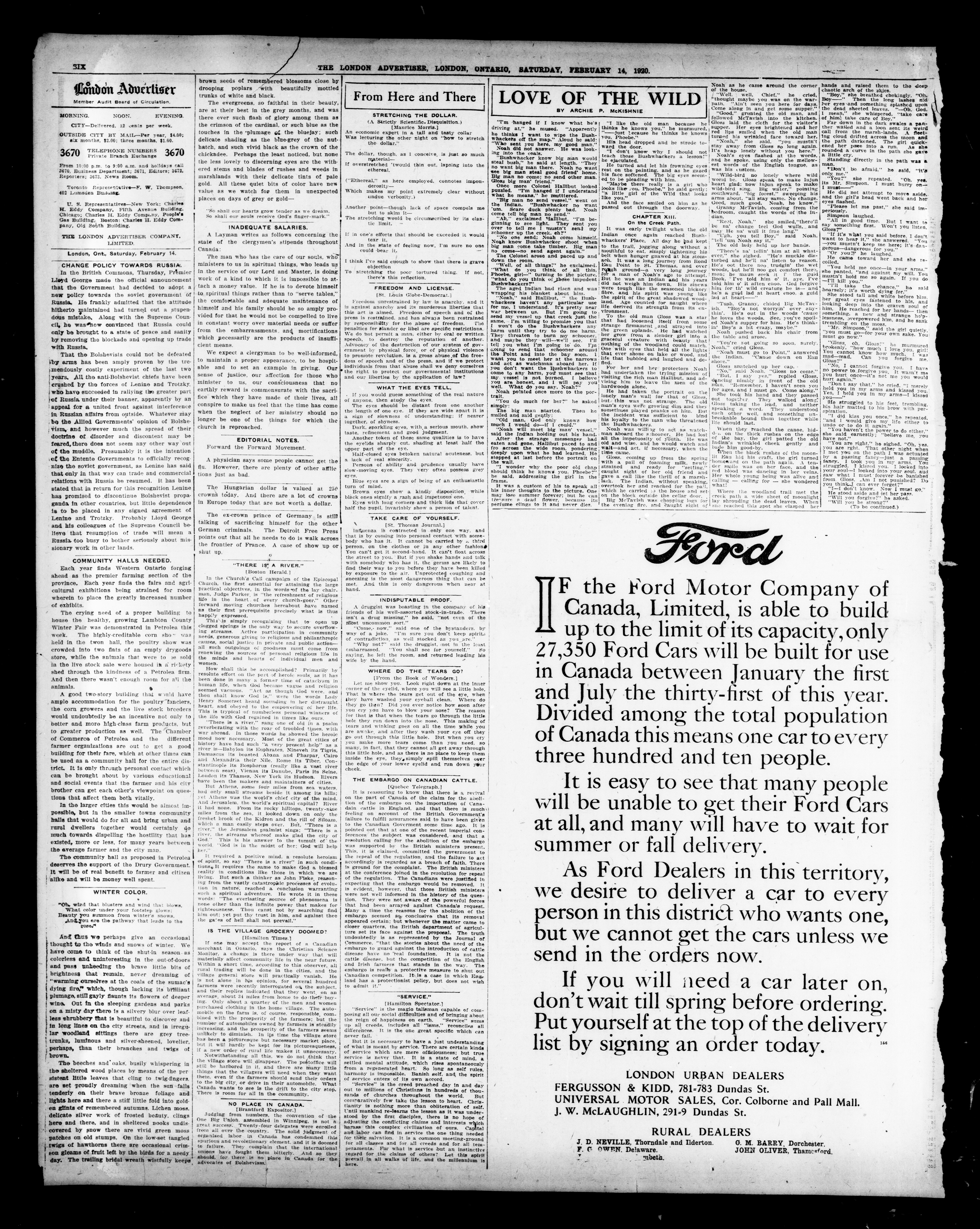 - The London Advertiser : 57th Year, No. 22633 (February 14, 1920)