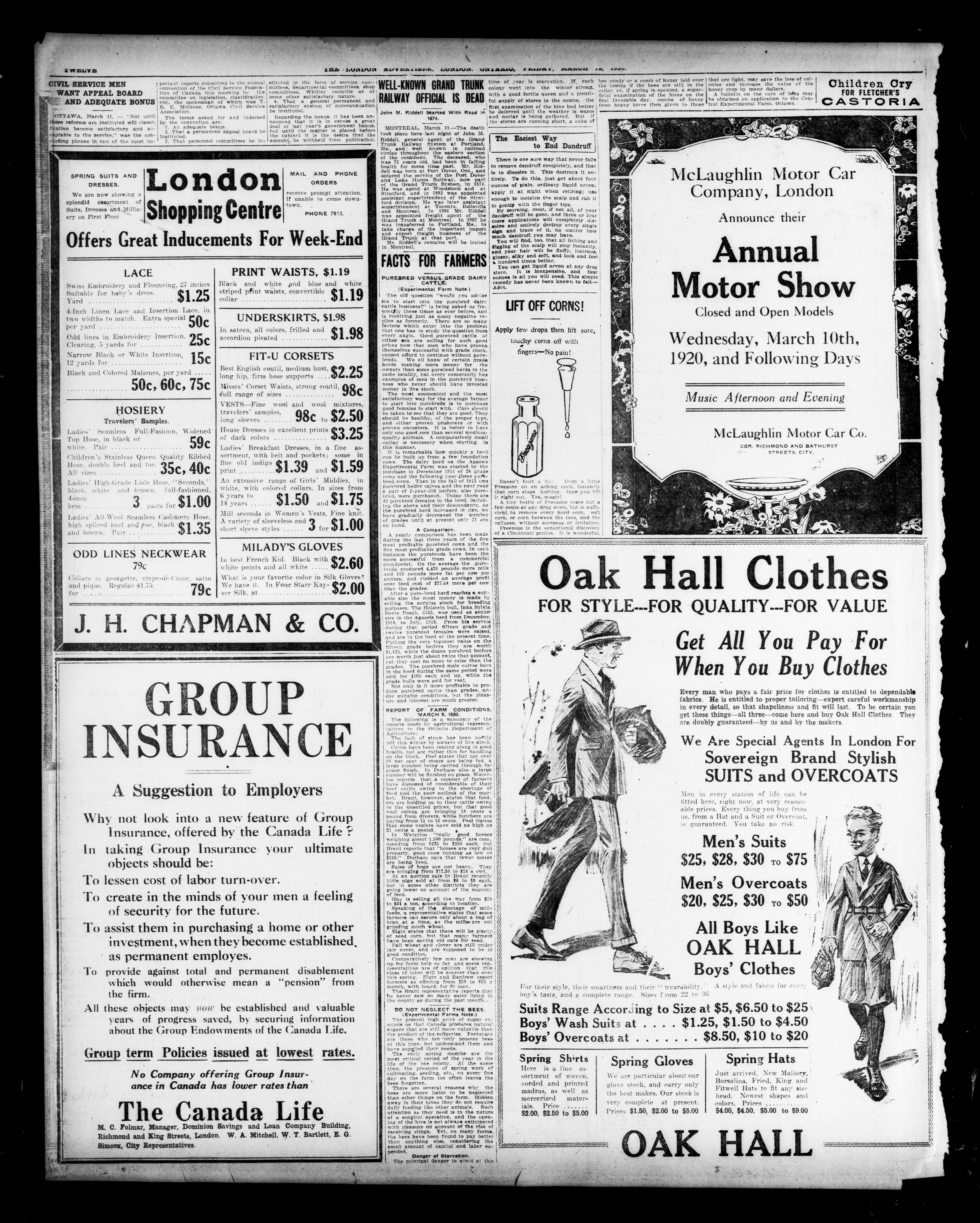 - The London Advertiser : 57th Year, No. 22656 (March 12, 1920)