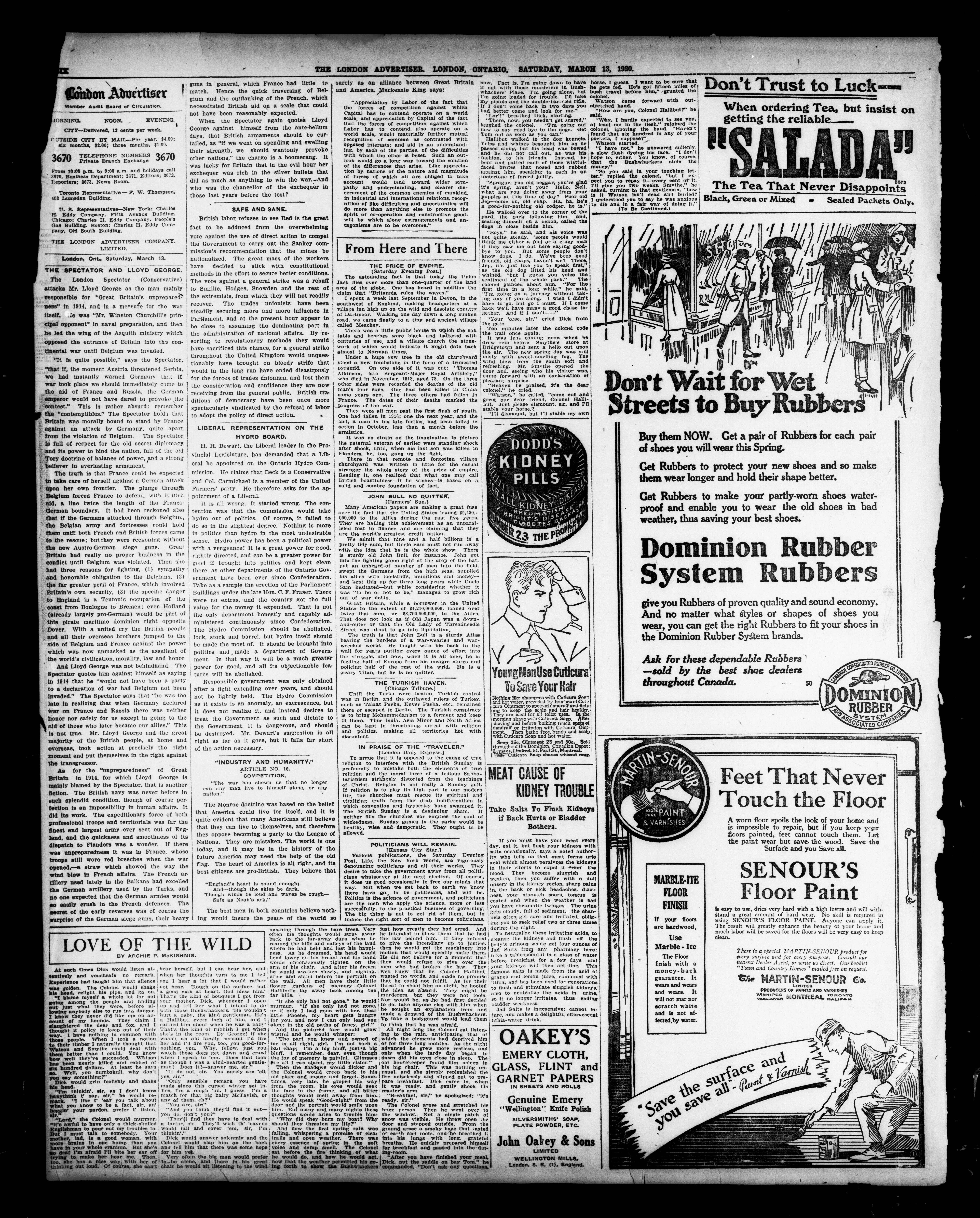 - The London Advertiser : 57th Year, No. 22657 (March 13, 1920)
