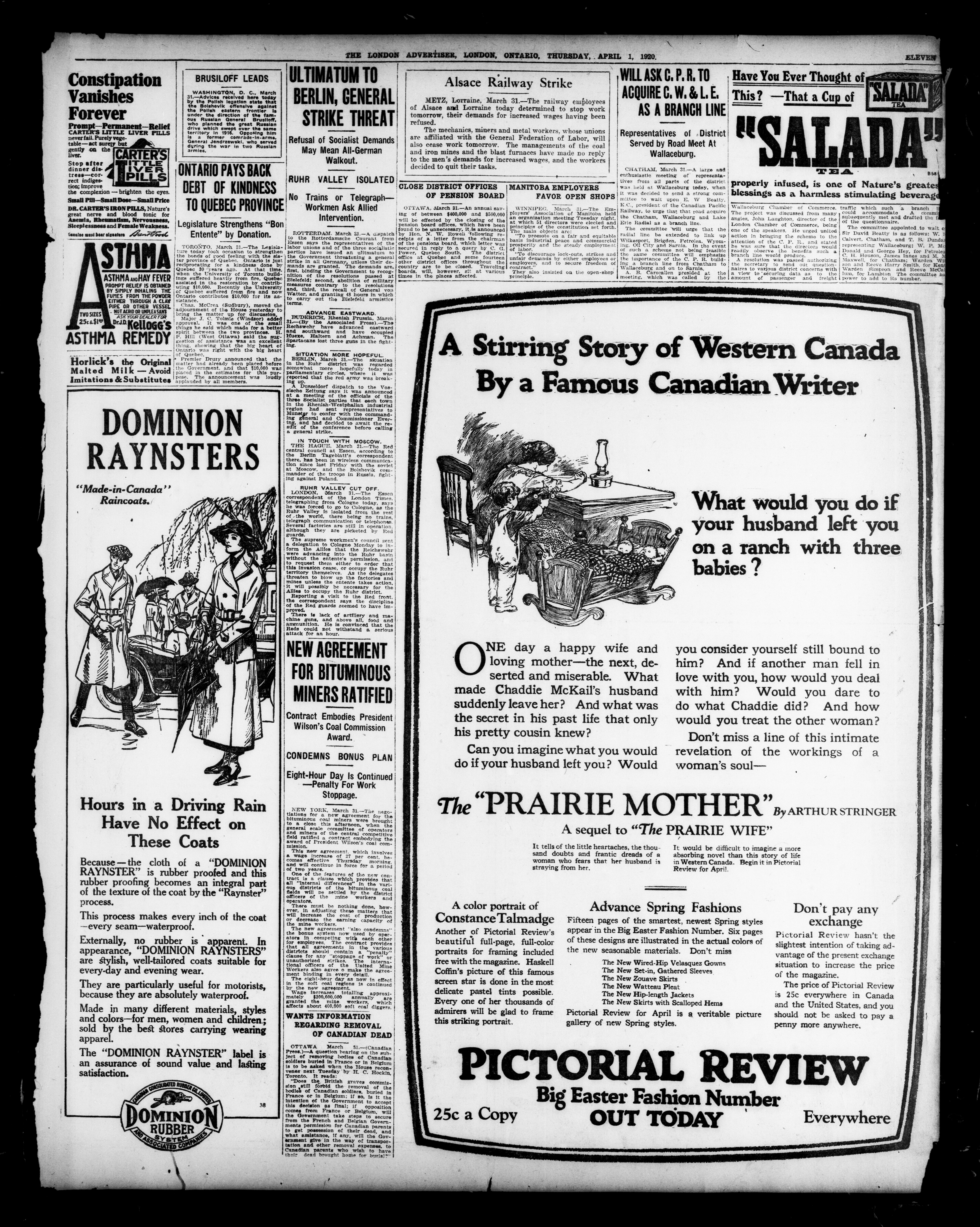 - The London Advertiser : 57th Year, No. 22673 (April 1, 1920)