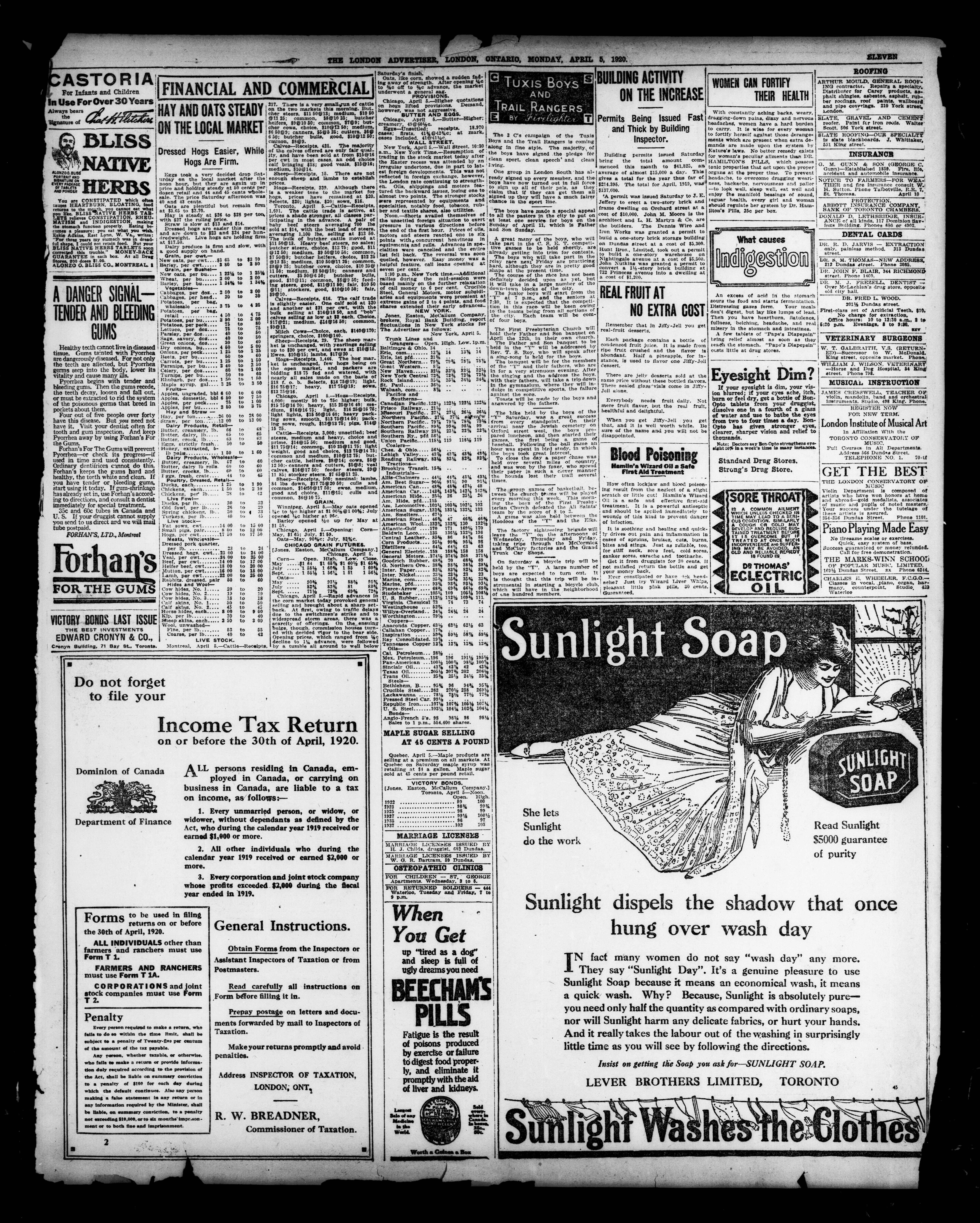 - The London Advertiser : 57th Year, No. 22676 (April 5, 1920)