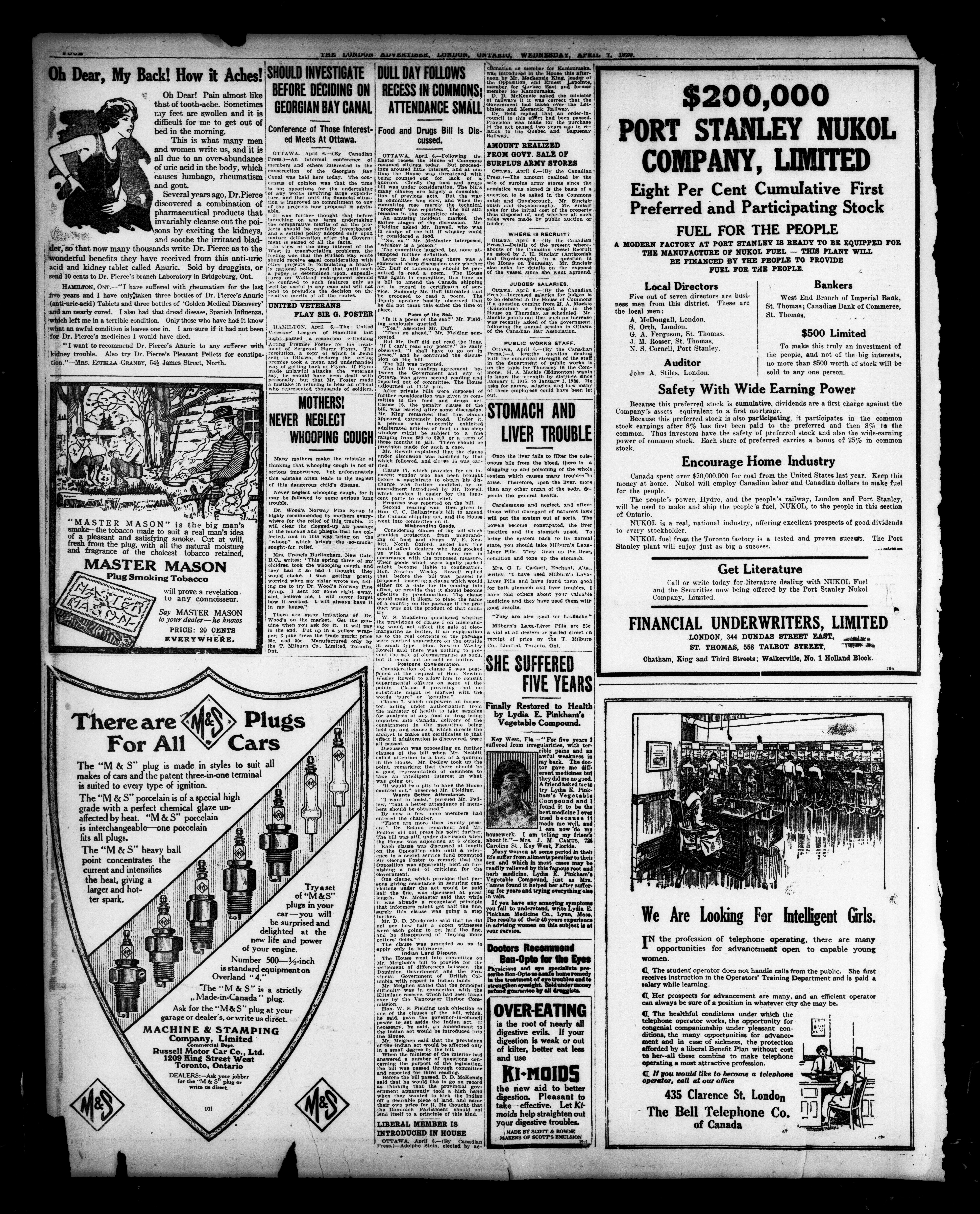 - The London Advertiser : 57th Year, No. 22678 (April 7, 1920)