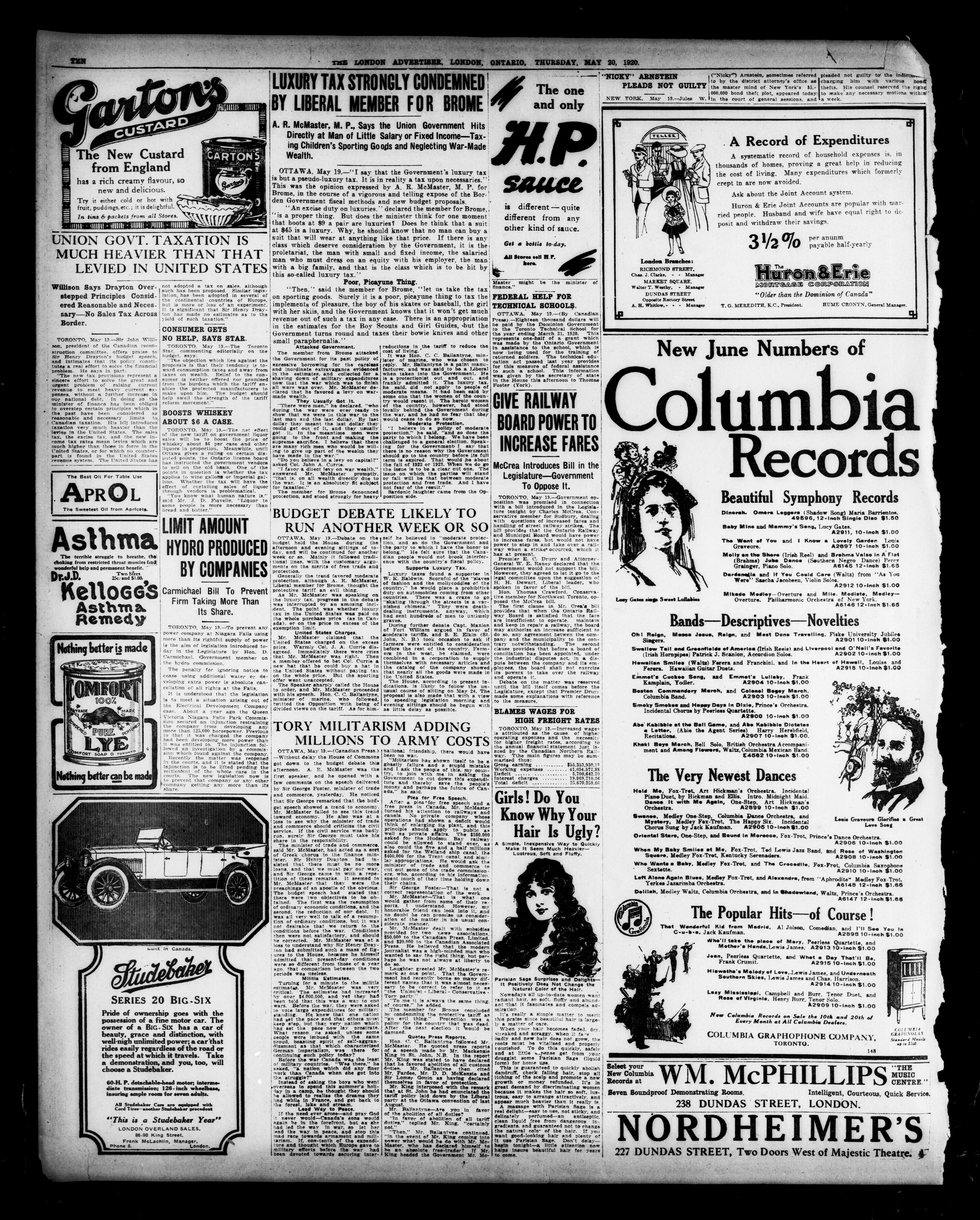 London advertiser. : The London Advertiser : 57th Year, No. 22715 (May 20, 1920)