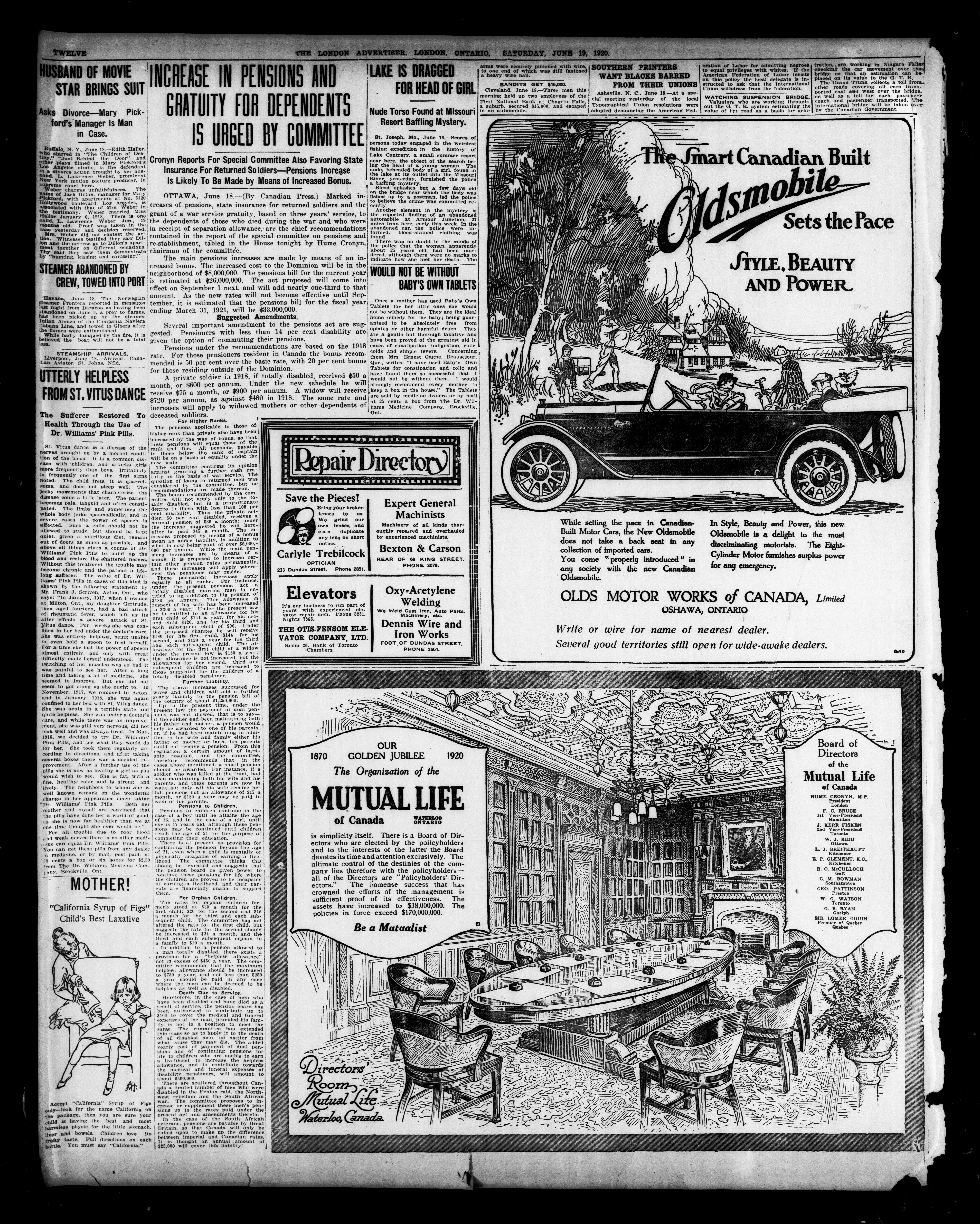 - The London Advertiser : 57th Year, No. 22741 (June 19, 1920)