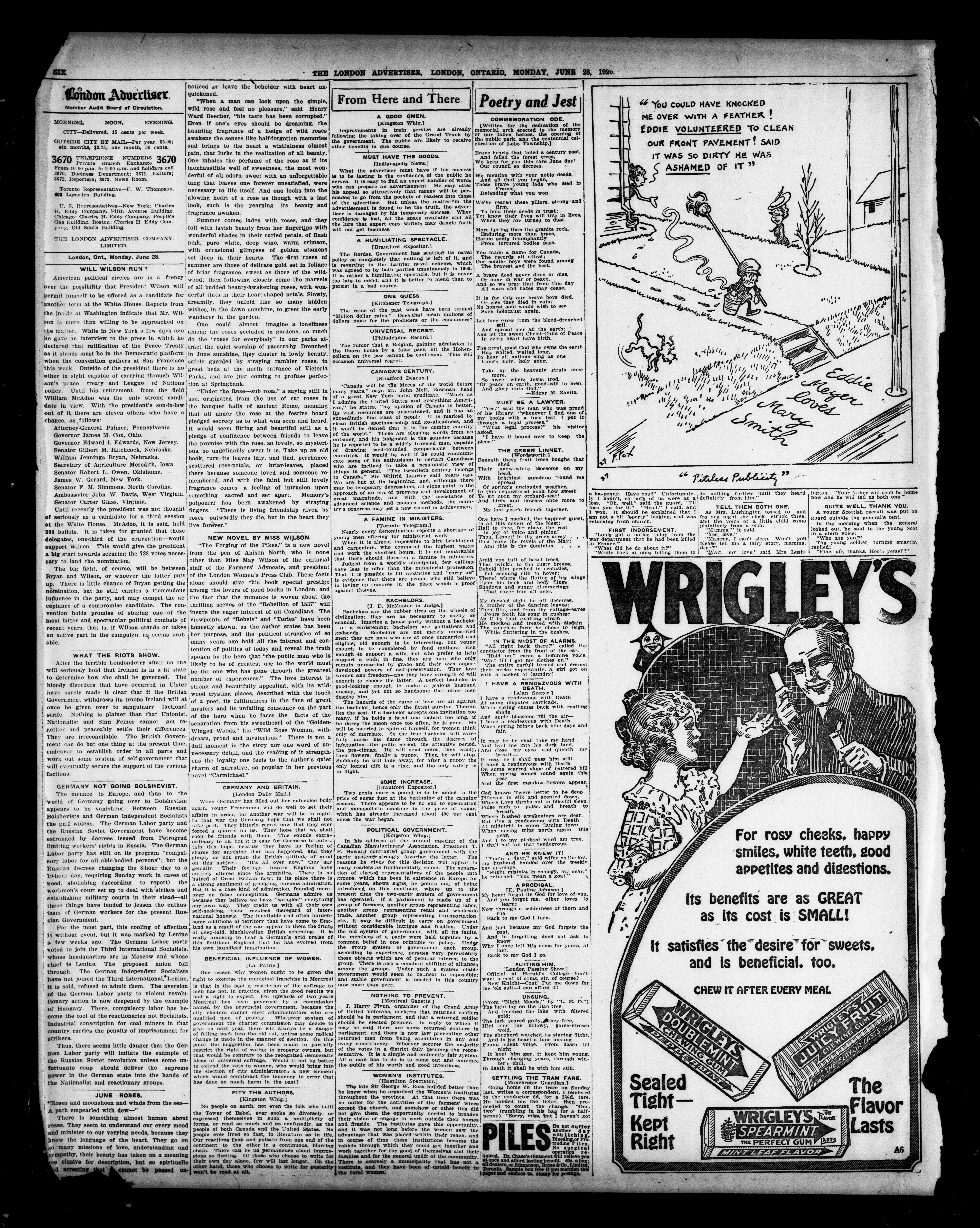 London advertiser. : The London Advertiser : 57th Year, No. 22748 (June 28, 1920)