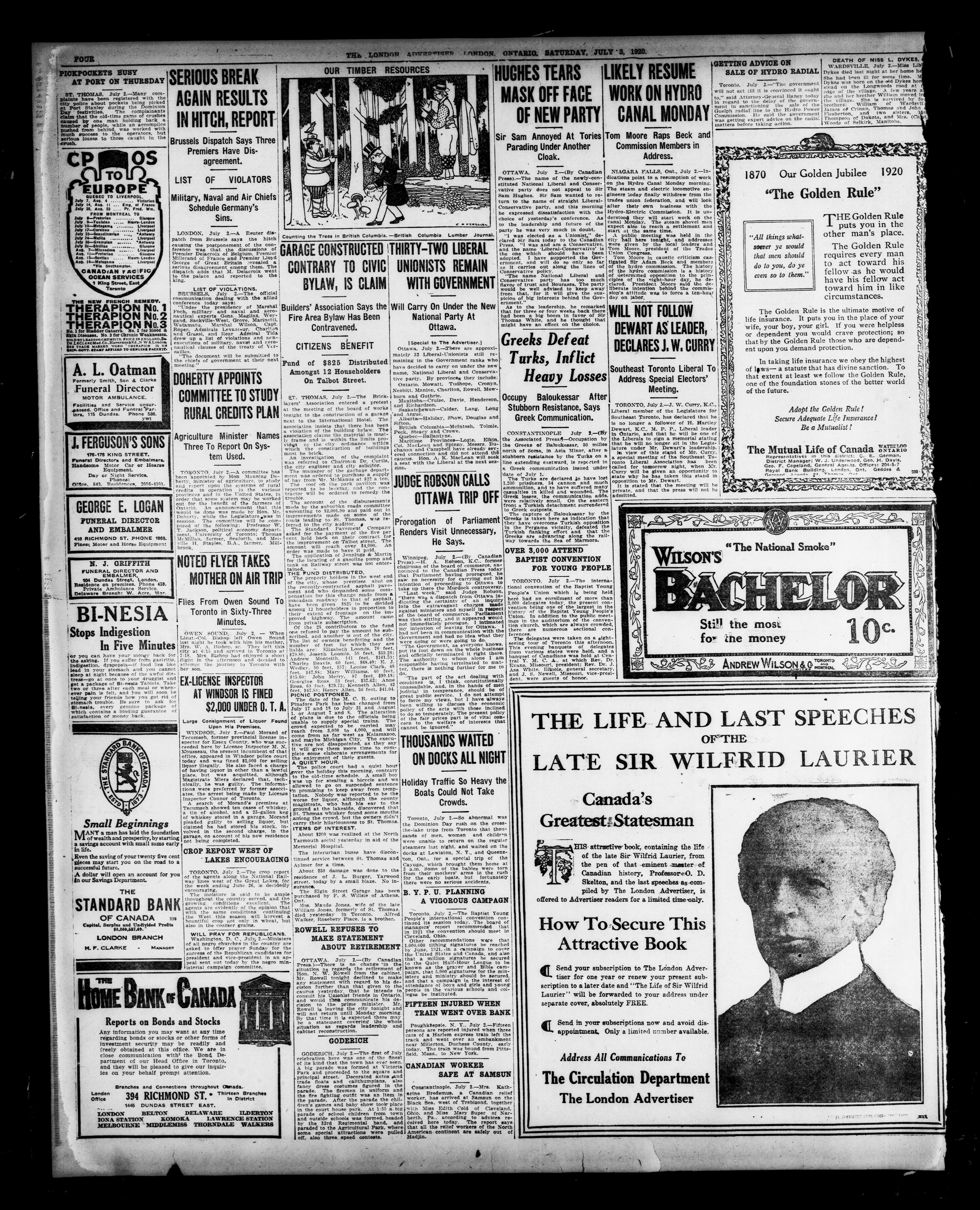 London advertiser. : The London Advertiser : 57th Year, No. 22753 (July 3, 1920)