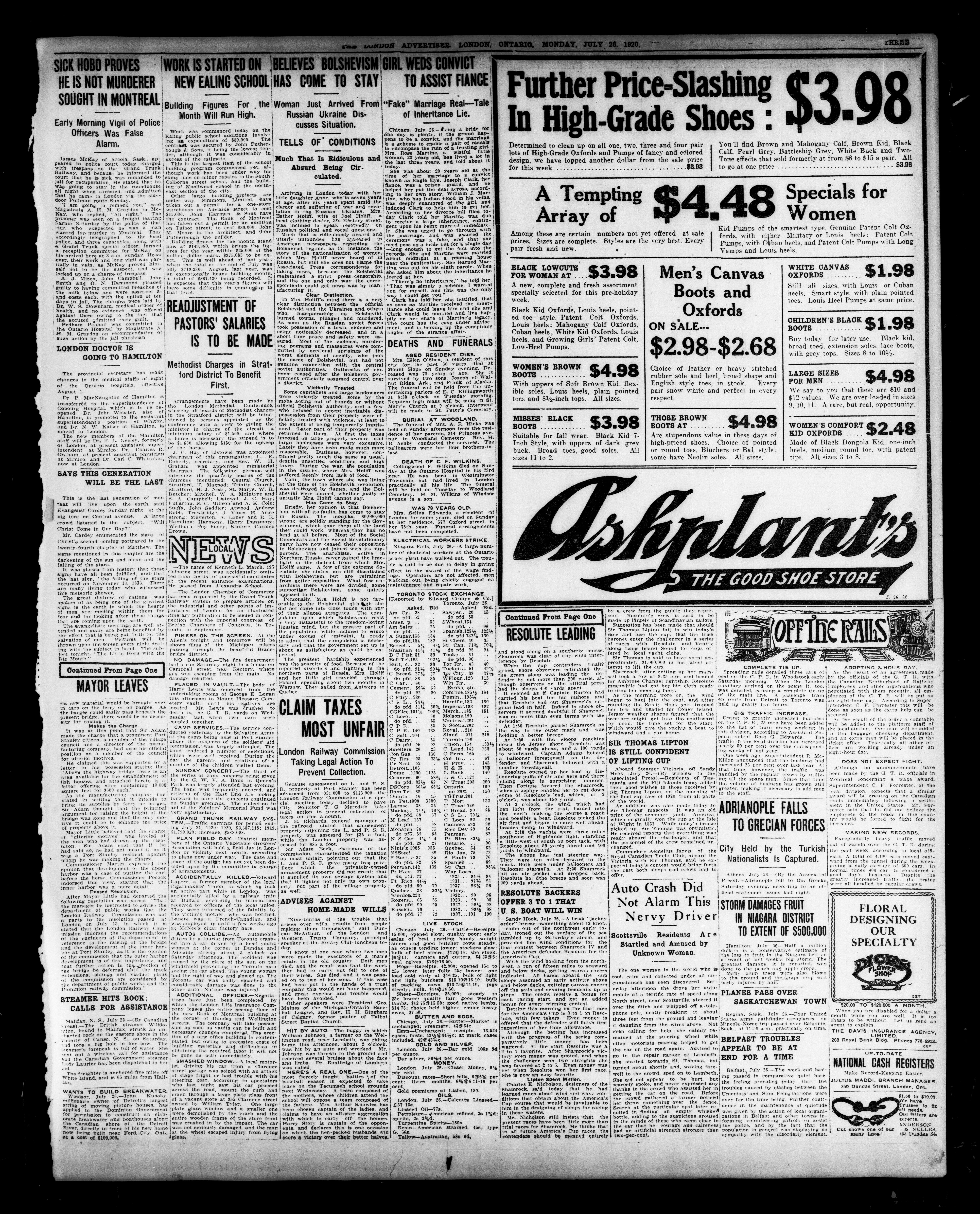 London advertiser. : The London Advertiser : 57th Year, No. 22772 (July 26, 1920)