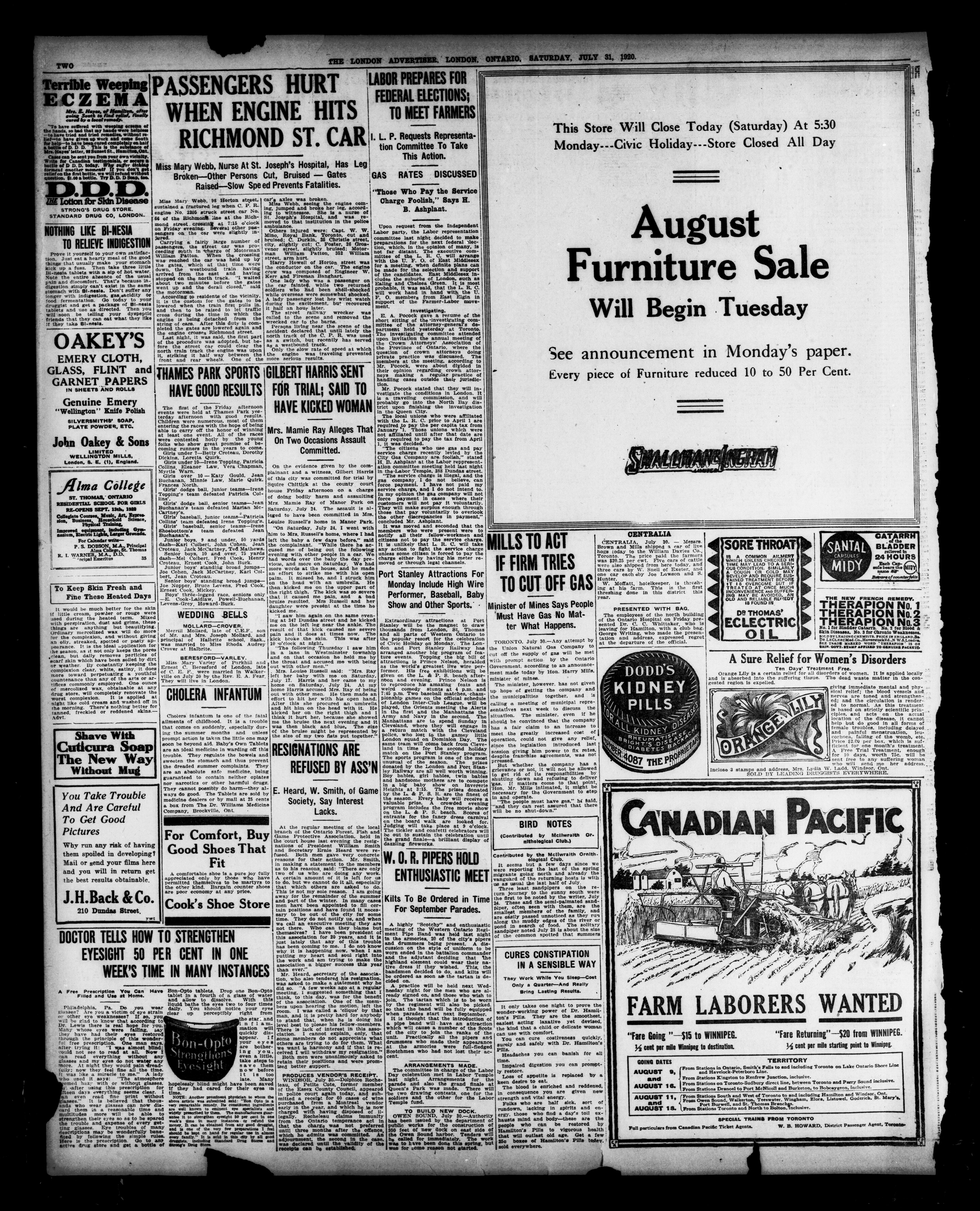 - The London Advertiser : 57th Year, No. 22777 (July 31, 1920)