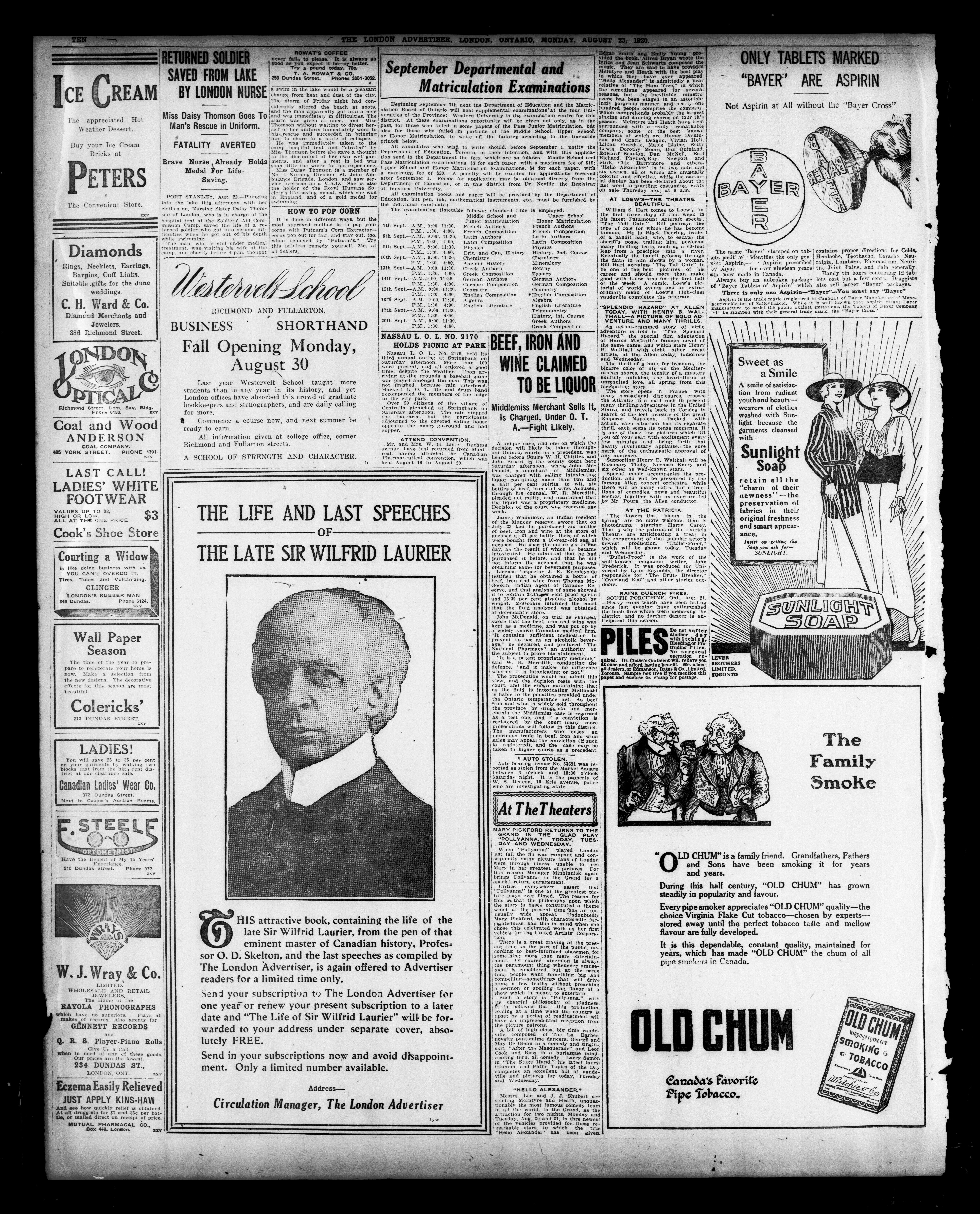 - The London Advertiser : 57th Year, No. 22796 (August 23, 1920)