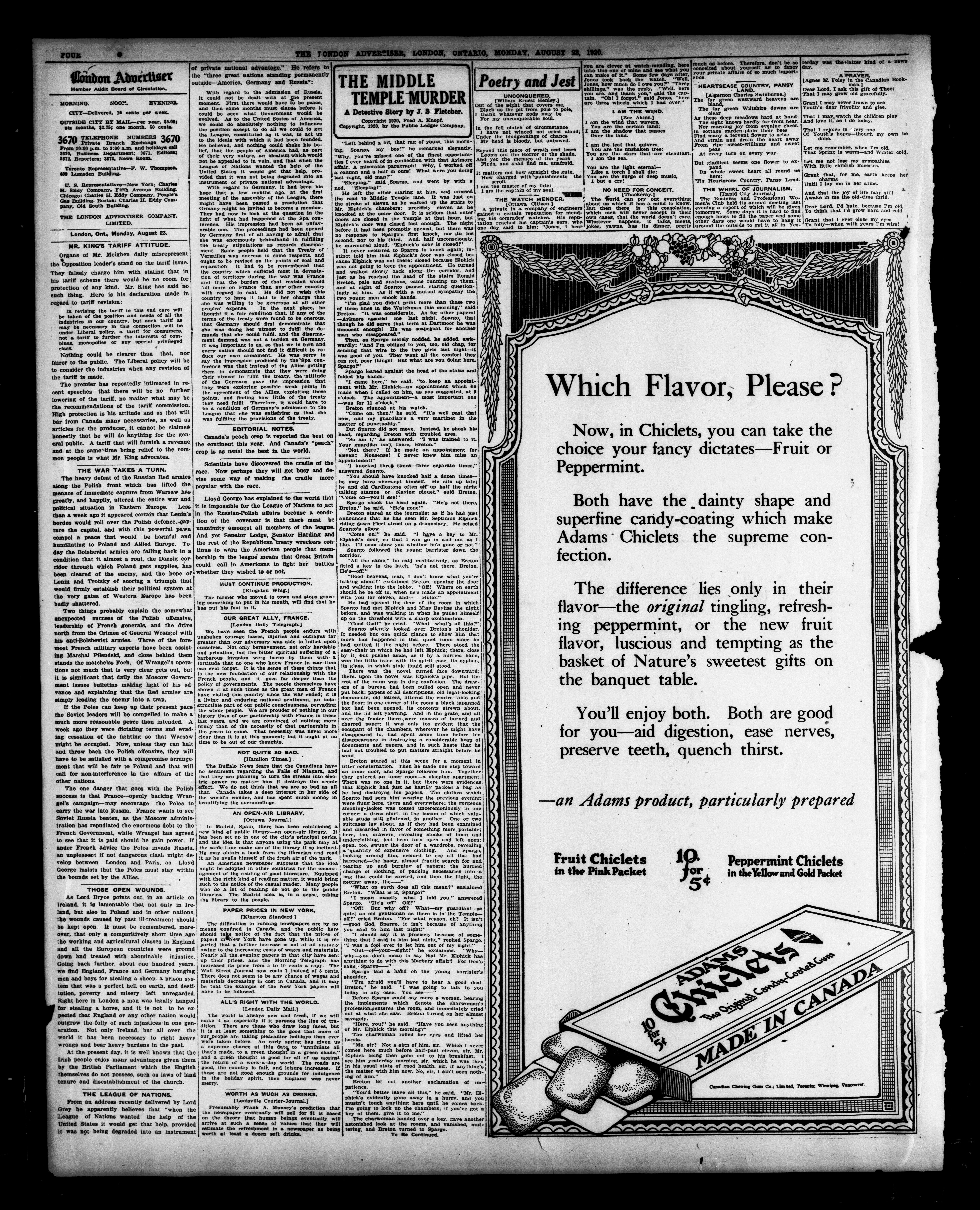- The London Advertiser : 57th Year, No. 22796 (August 23, 1920)