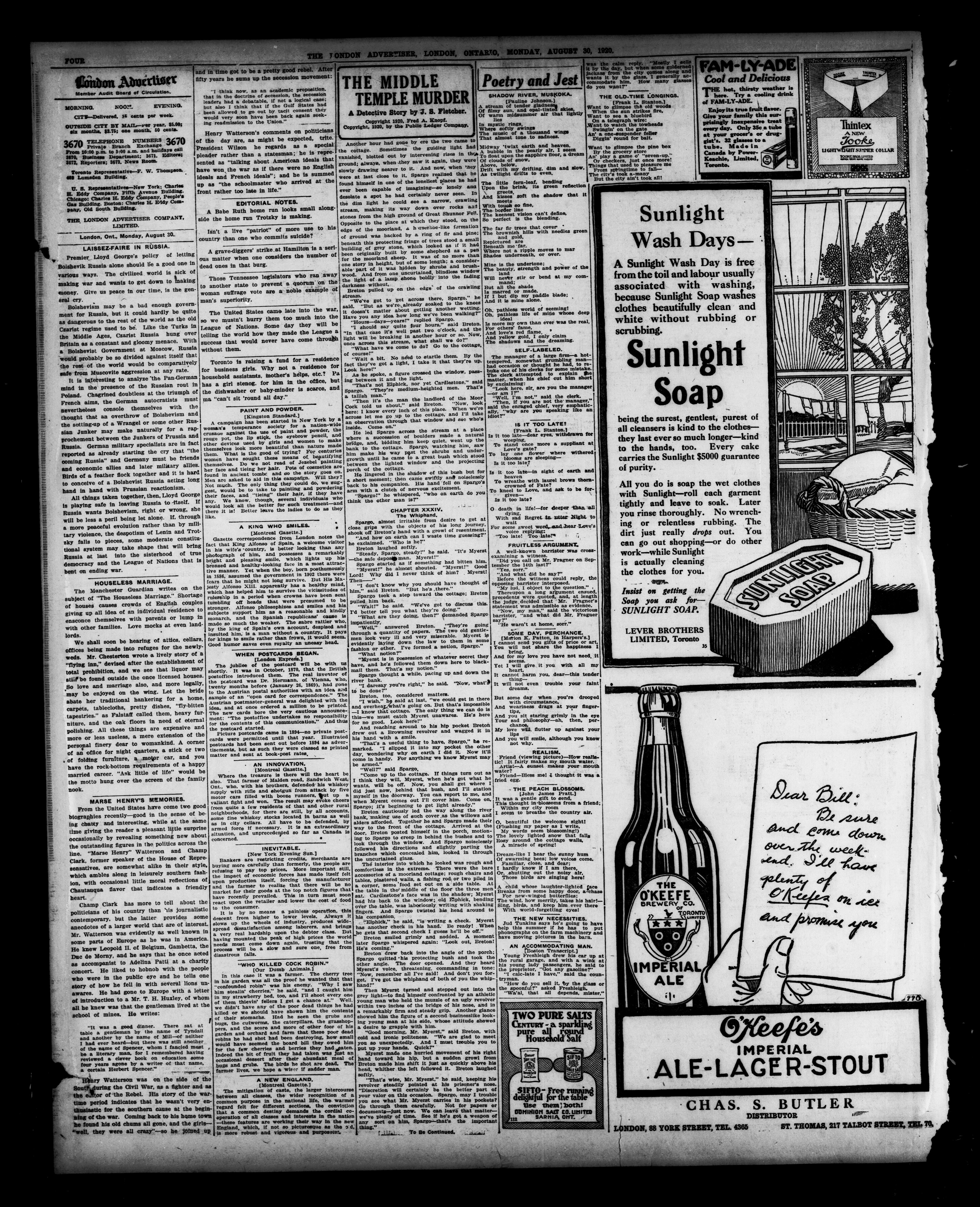 - The London Advertiser : 57th Year, No. 22802 (August 30, 1920)