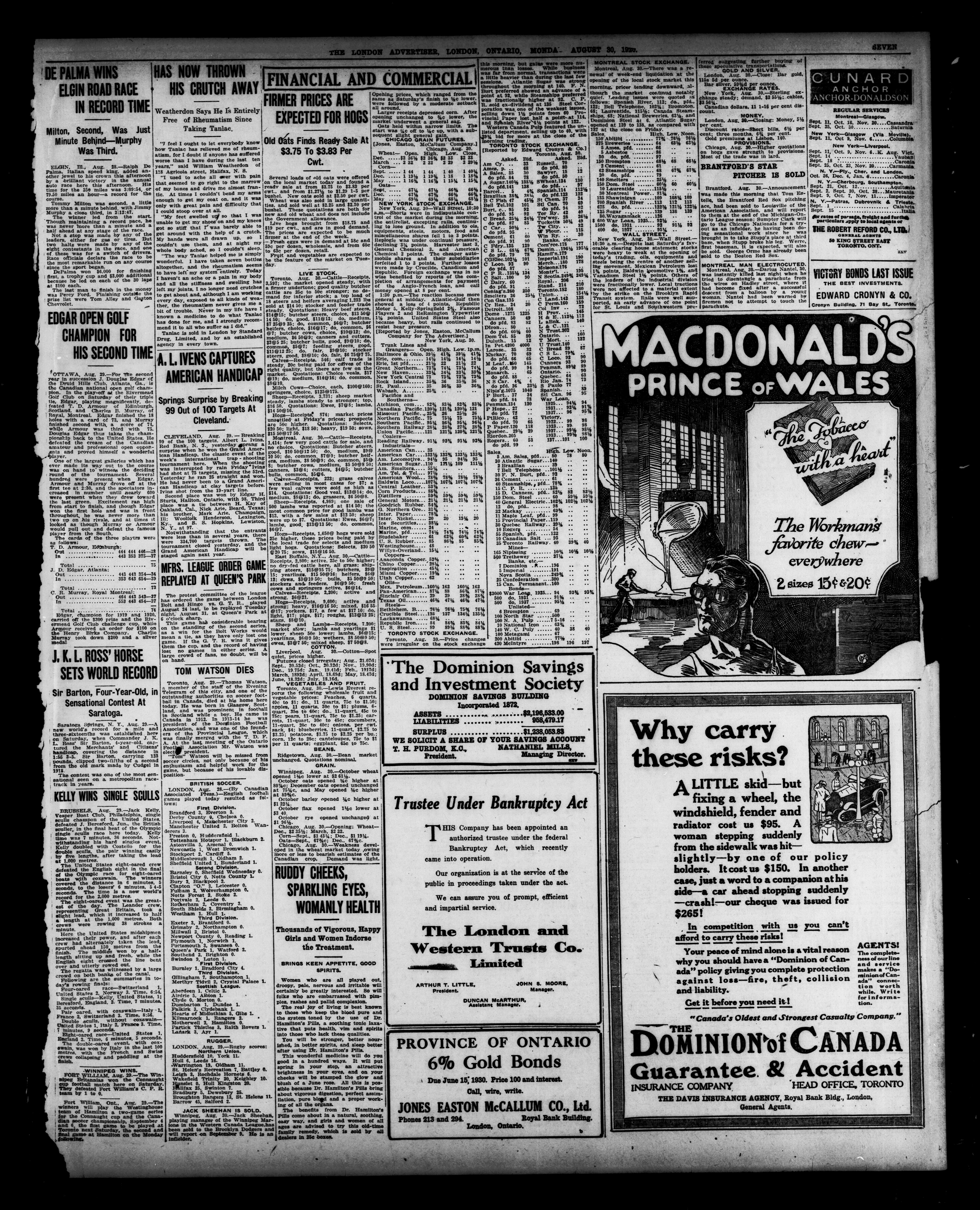 London advertiser. : The London Advertiser : 57th Year, No. 22802 (August 30, 1920)