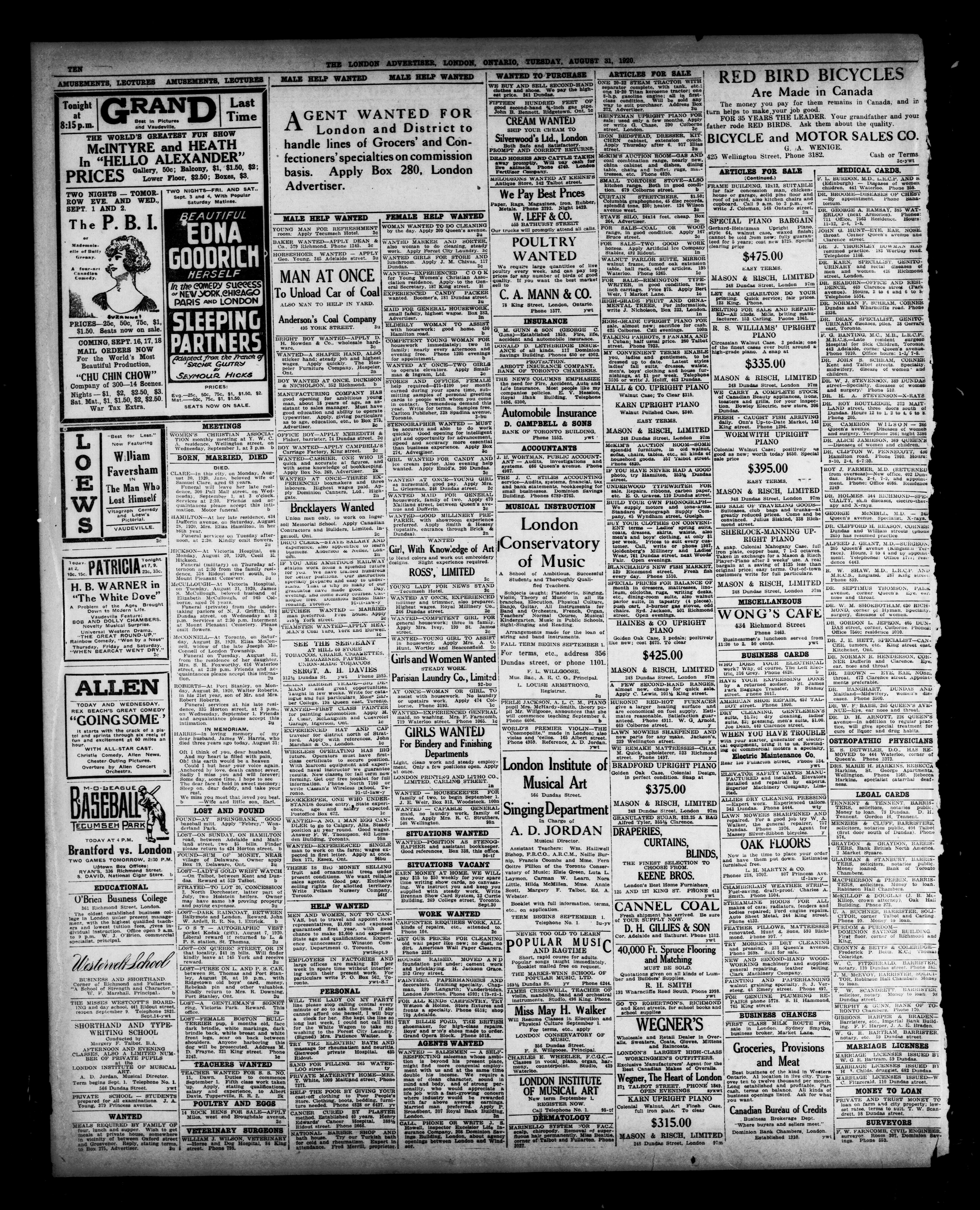 - The London Advertiser : 57th Year, No. 22803 (August 31, 1920)