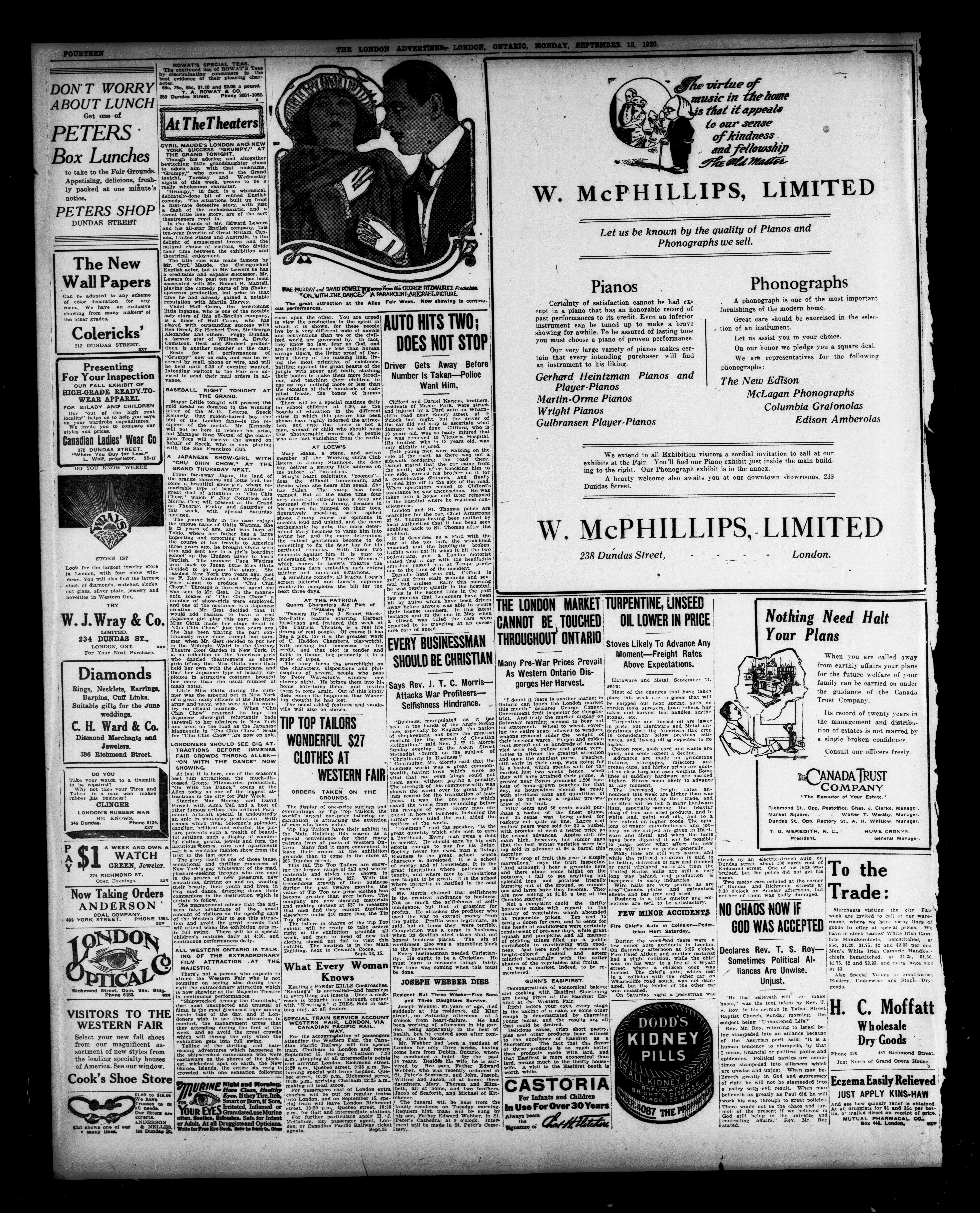 London advertiser. : The London Advertiser : 57th Year, No. 22814 (September 13, 1920)