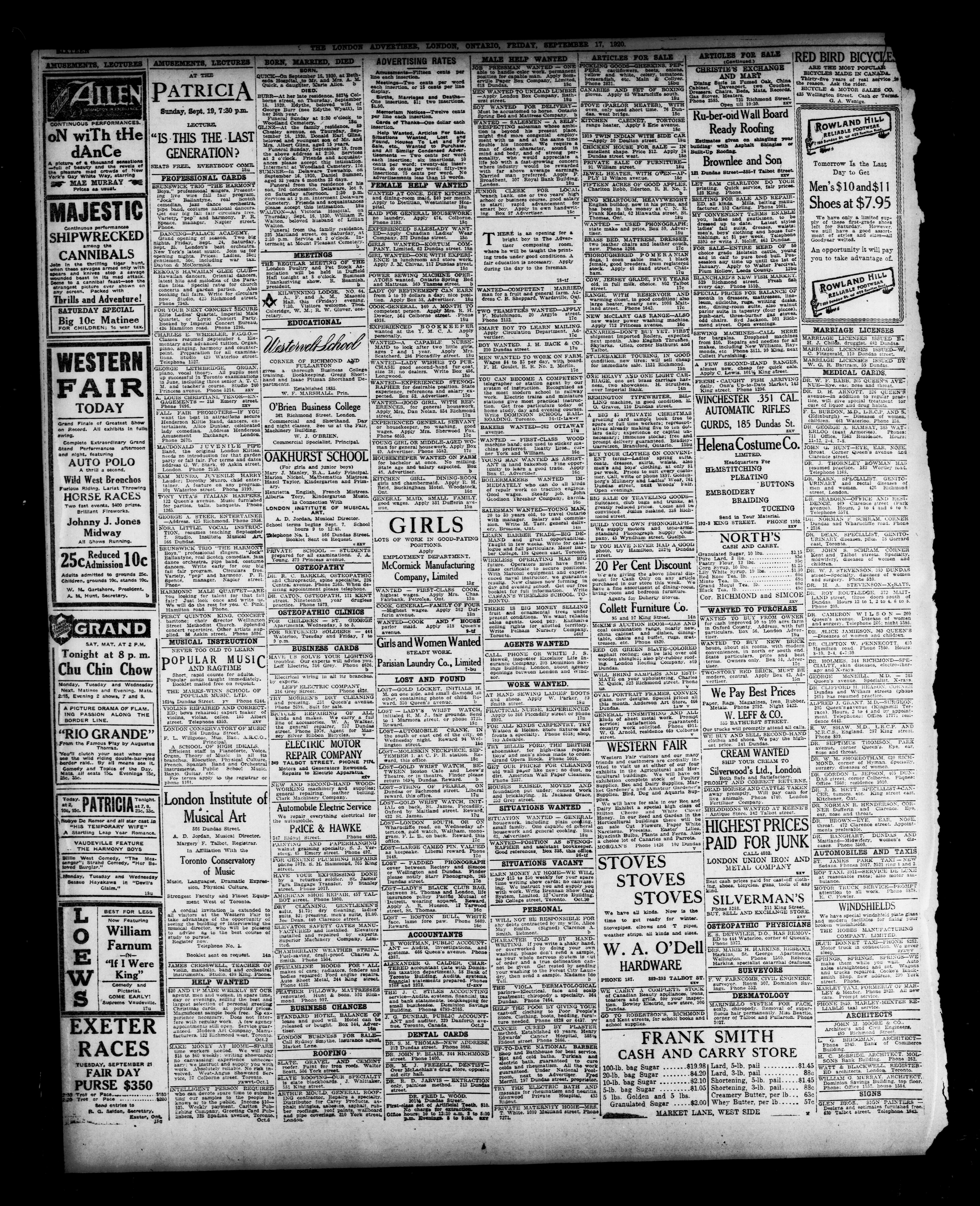 London advertiser. : The London Advertiser : 57th Year, No. 22818 (September 17, 1920)