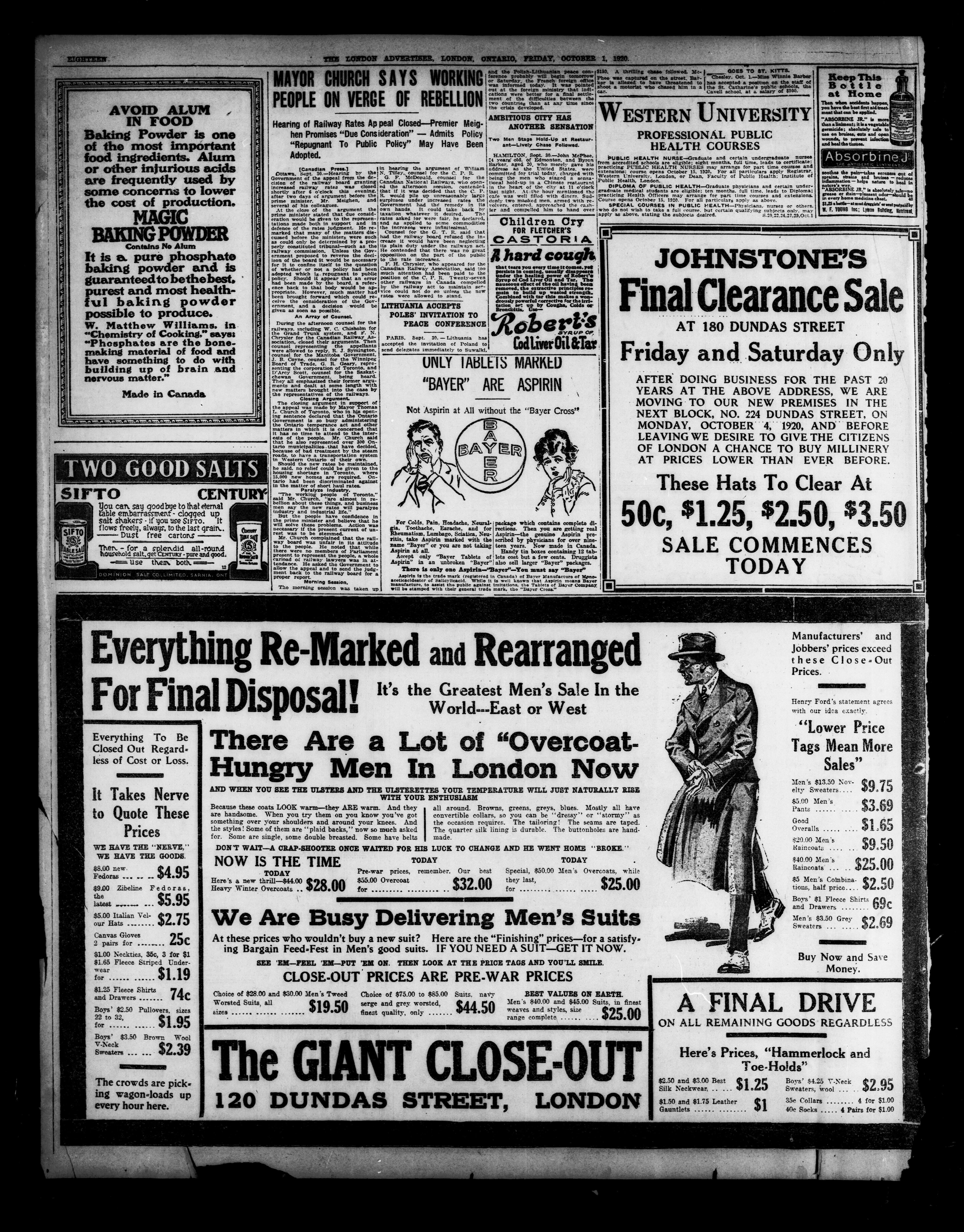 - The London Advertiser : 57th Year, No. 22830 (October 1, 1920)