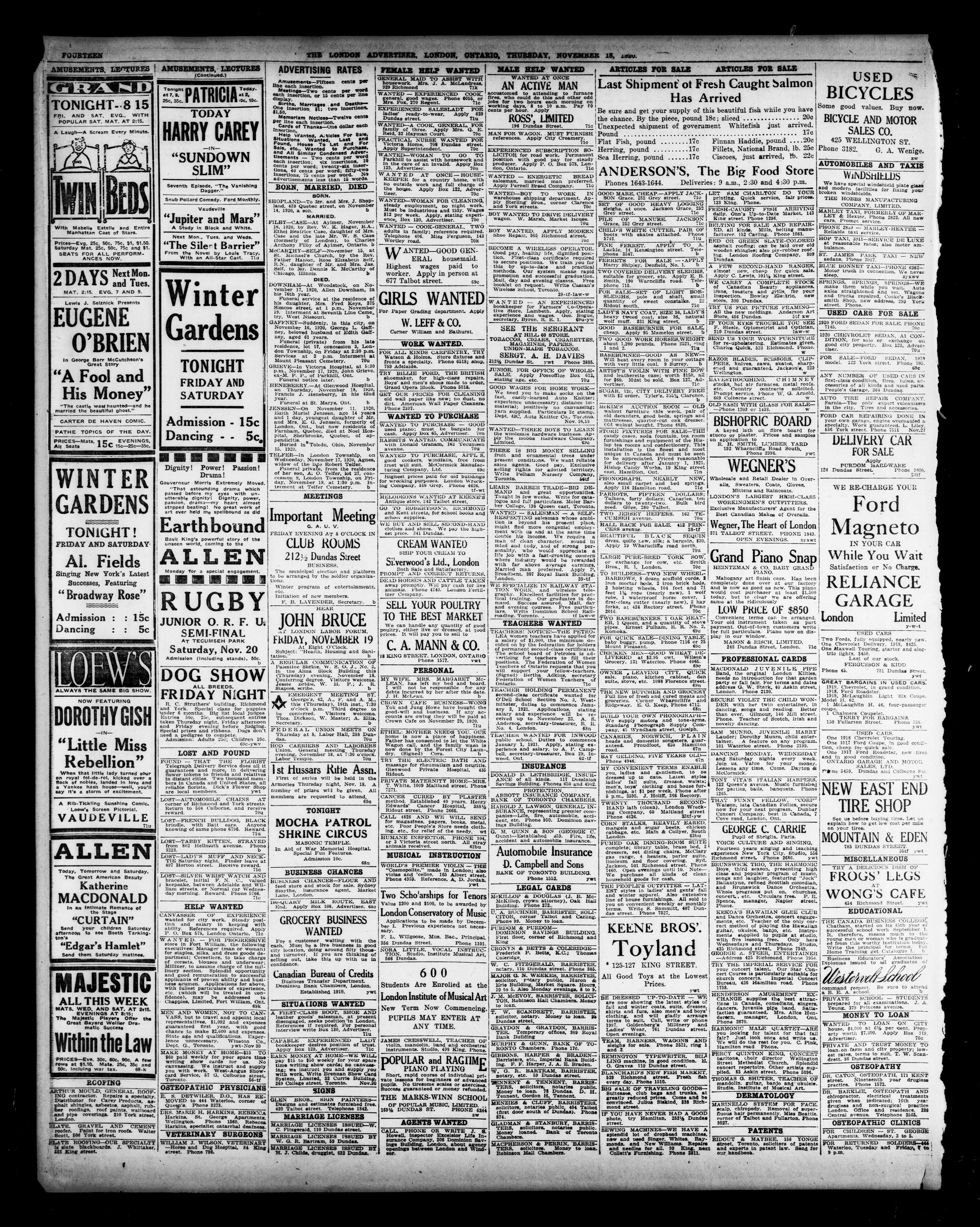- The London Advertiser : 57th Year, No. 22871 (November 18, 1920)