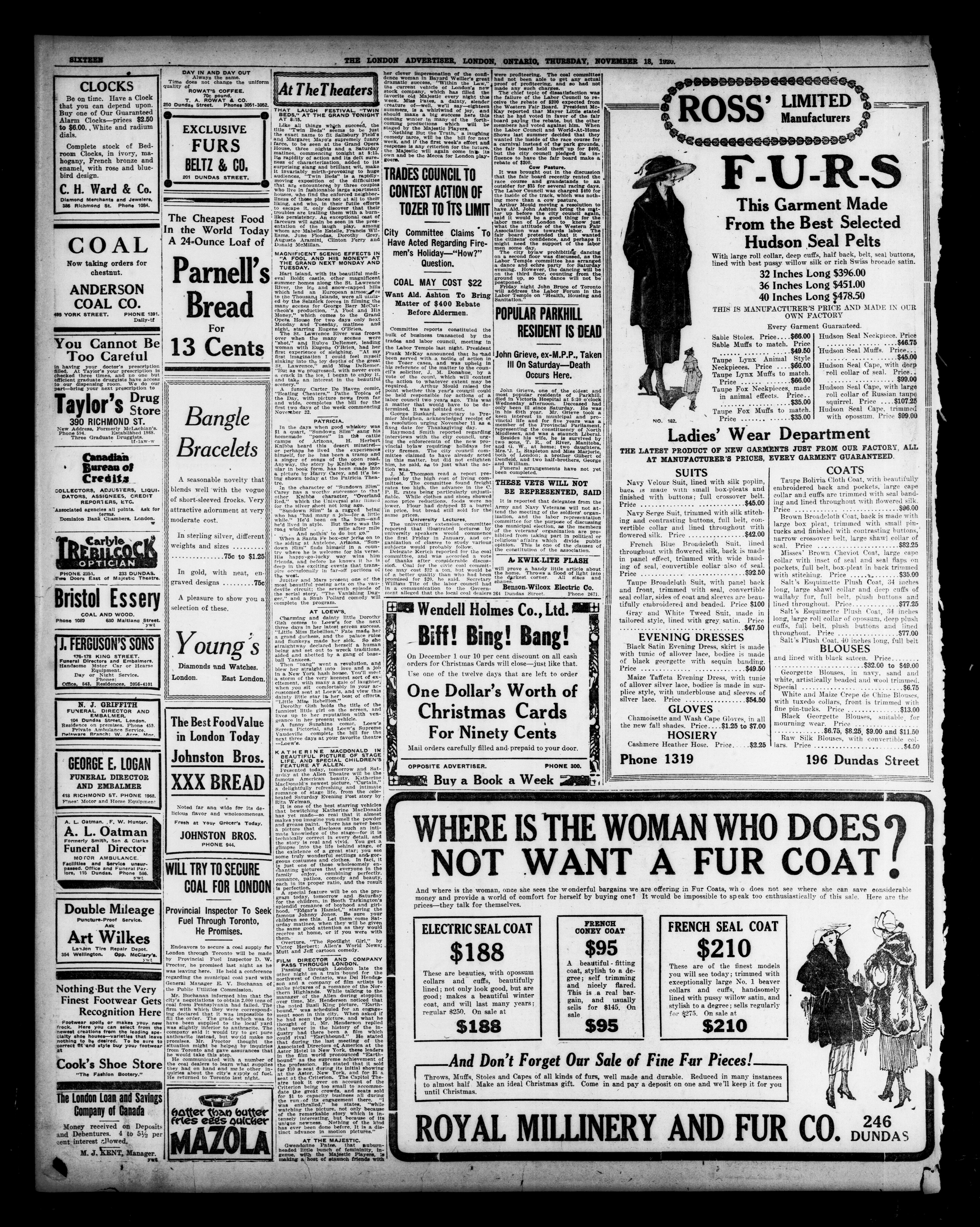 The London Advertiser : 57th Year, No. 22871 (November 18, 1920)
