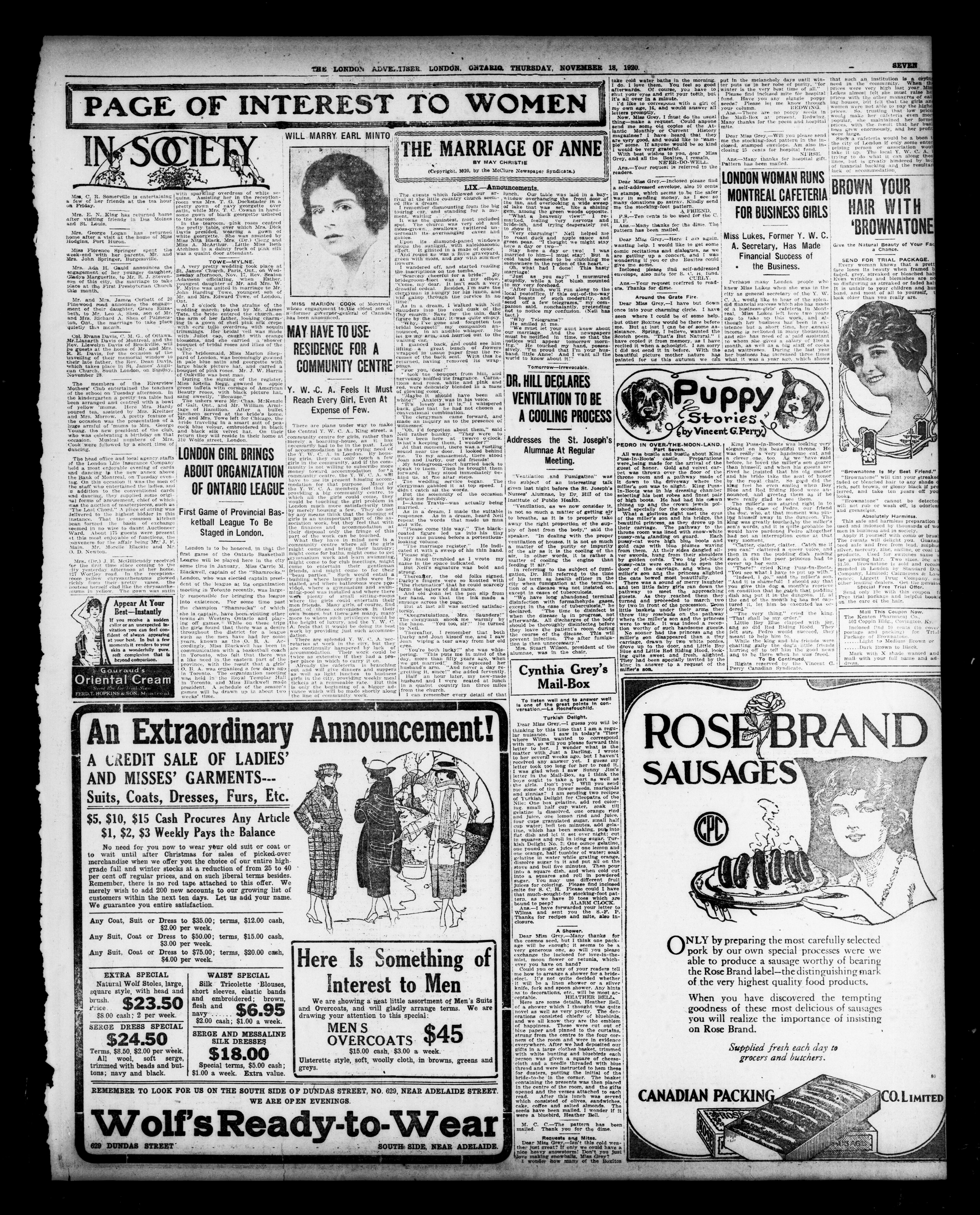 London advertiser. : The London Advertiser : 57th Year, No. 22871 (November 18, 1920)