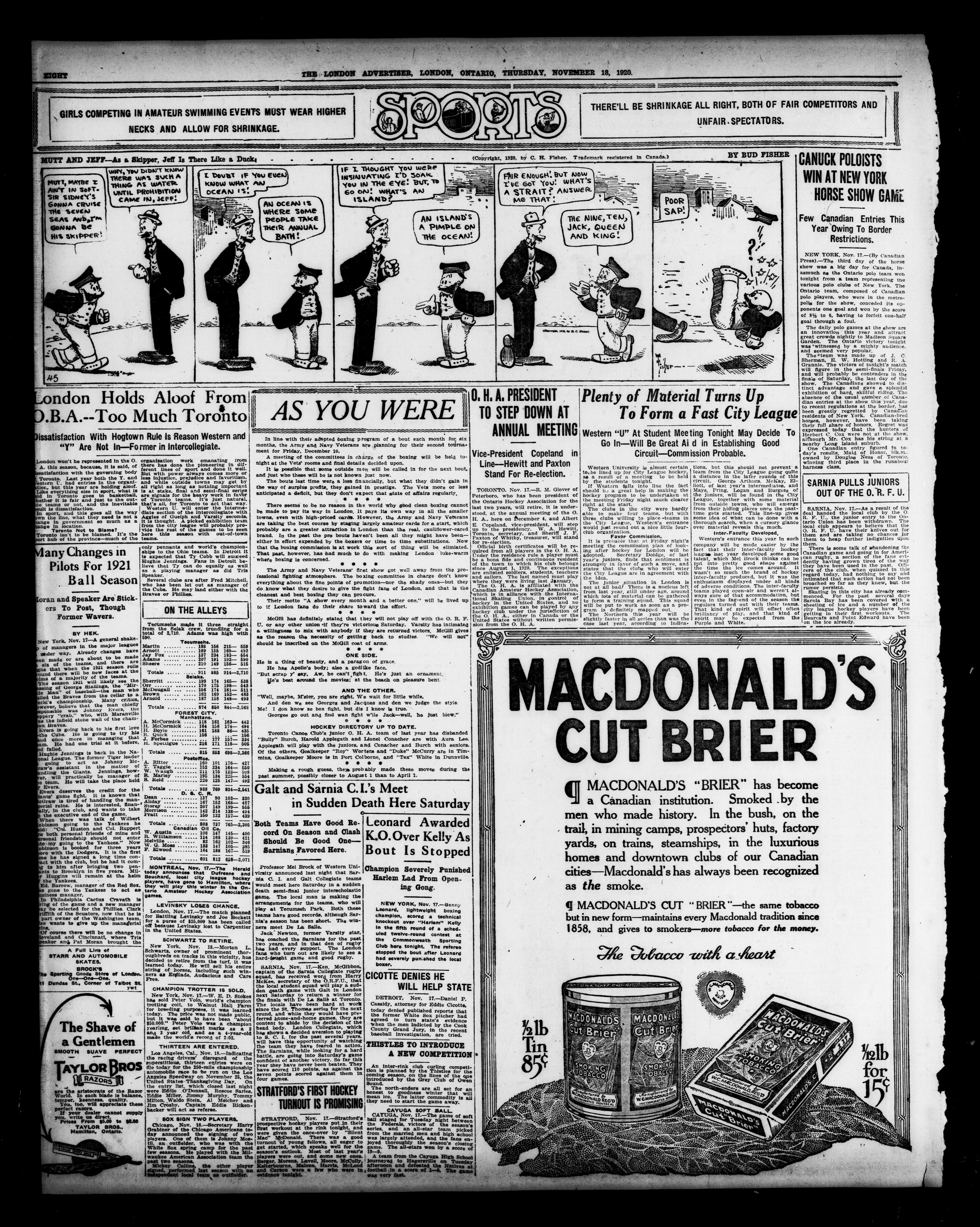 London advertiser. : The London Advertiser : 57th Year, No. 22871 (November 18, 1920)