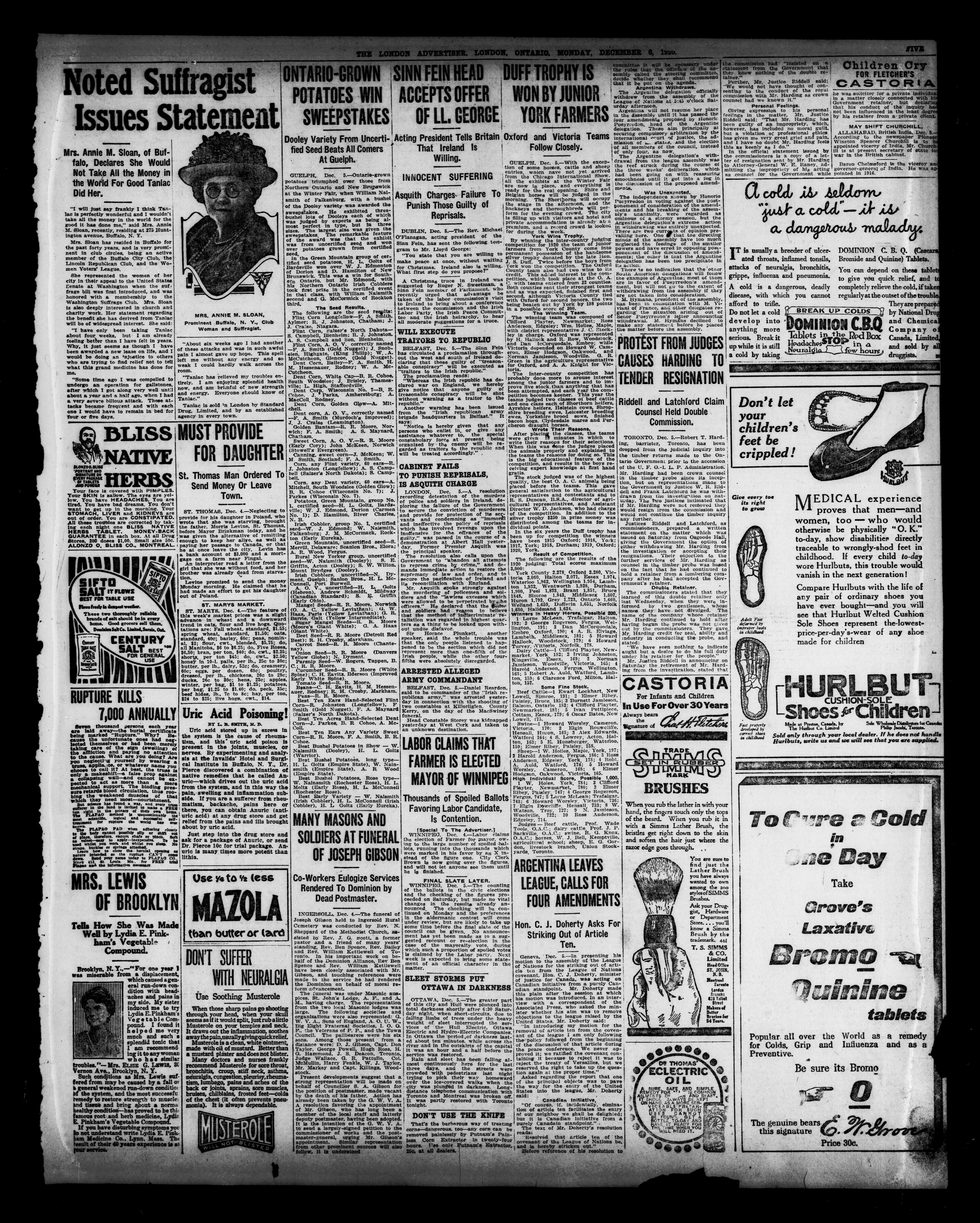 - The London Advertiser : 57th Year, No. 22886 (December 6, 1920)