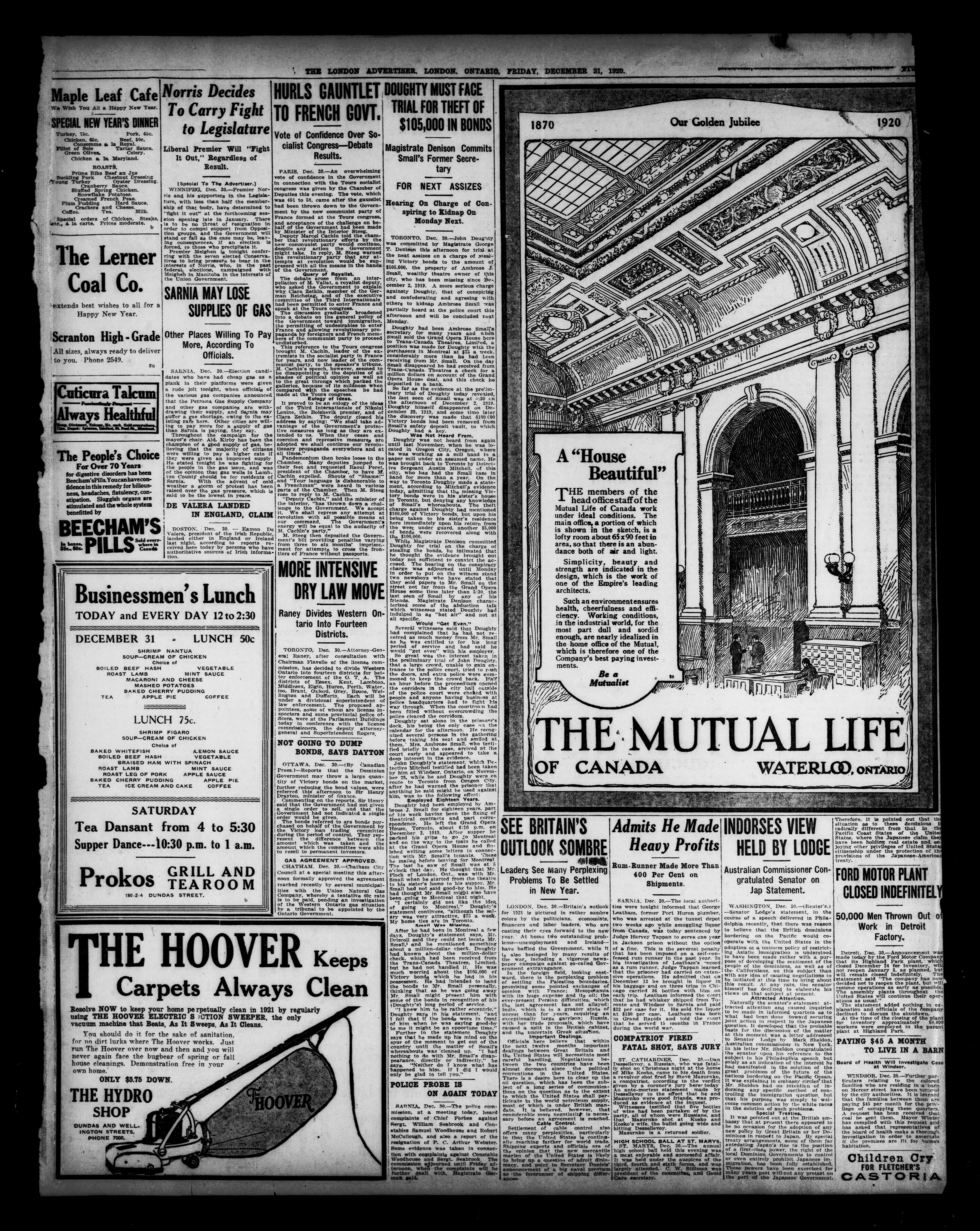 The London Advertiser : 57th Year, No. 22908 (December 31, 1920)